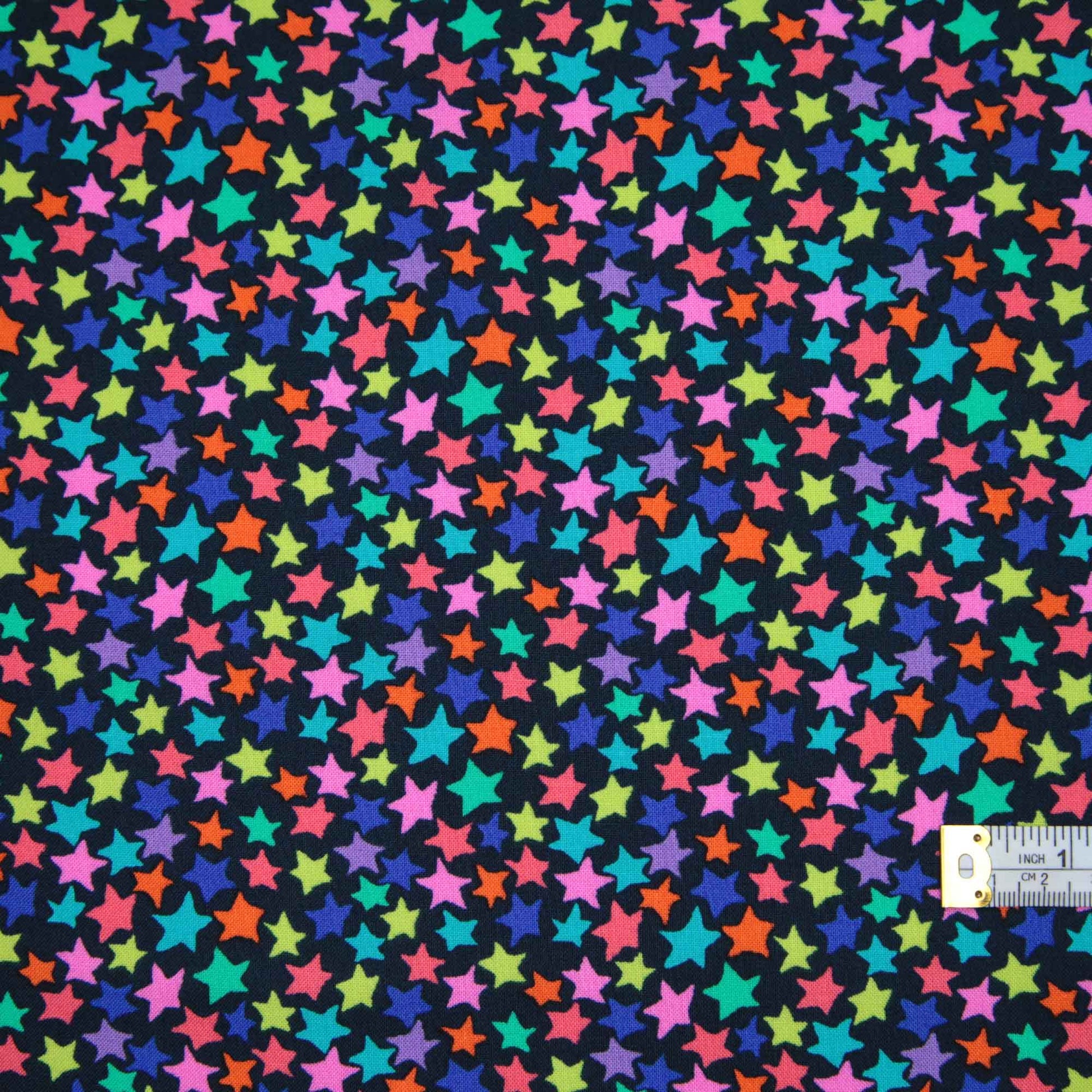 Very dark blue background with a multitude of bright coloiured stars