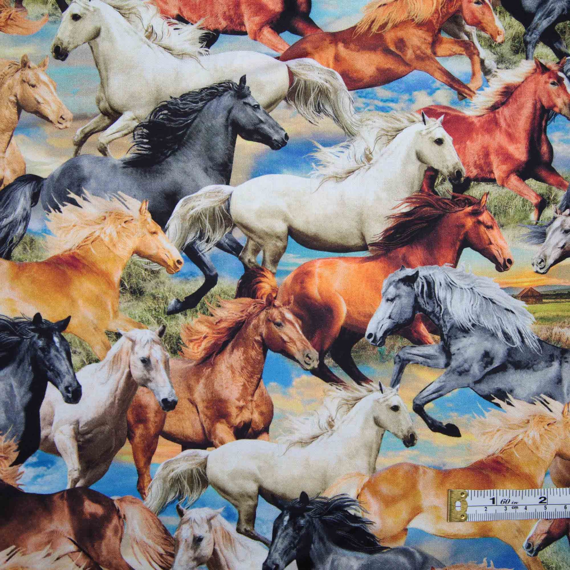 100% horses running either left or right. Pattern repeat is 40cm