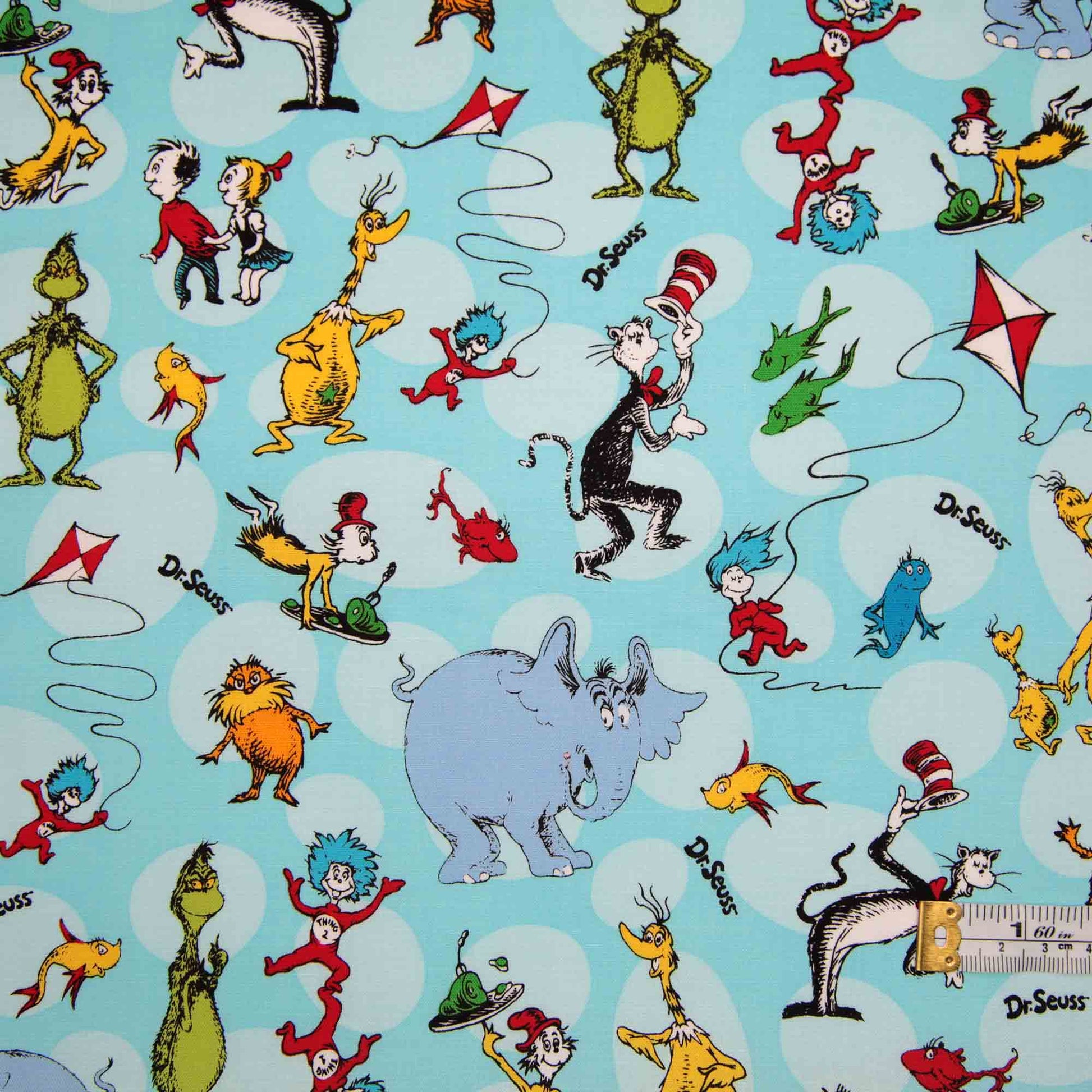 An assembly of Seuss characters, including Thing 1 and Thing 2