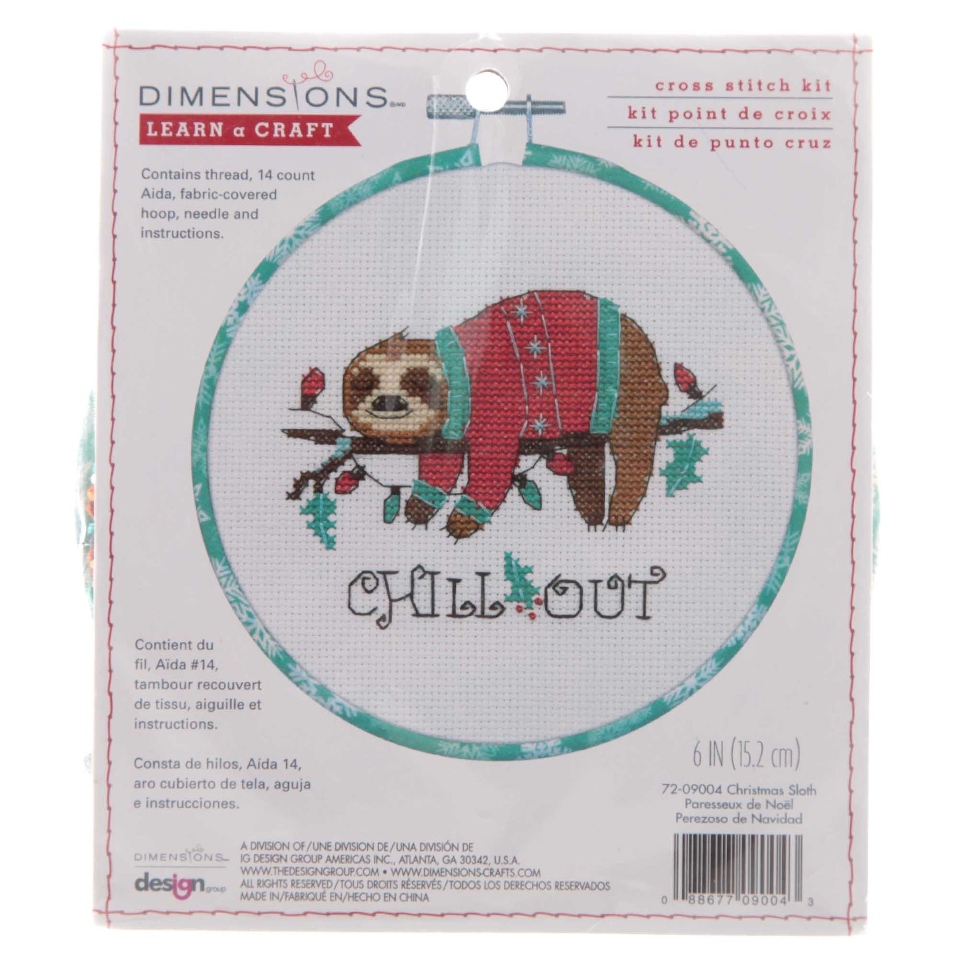 14 count aida fabric, stranded cotton colours, needle, instructions and hoop