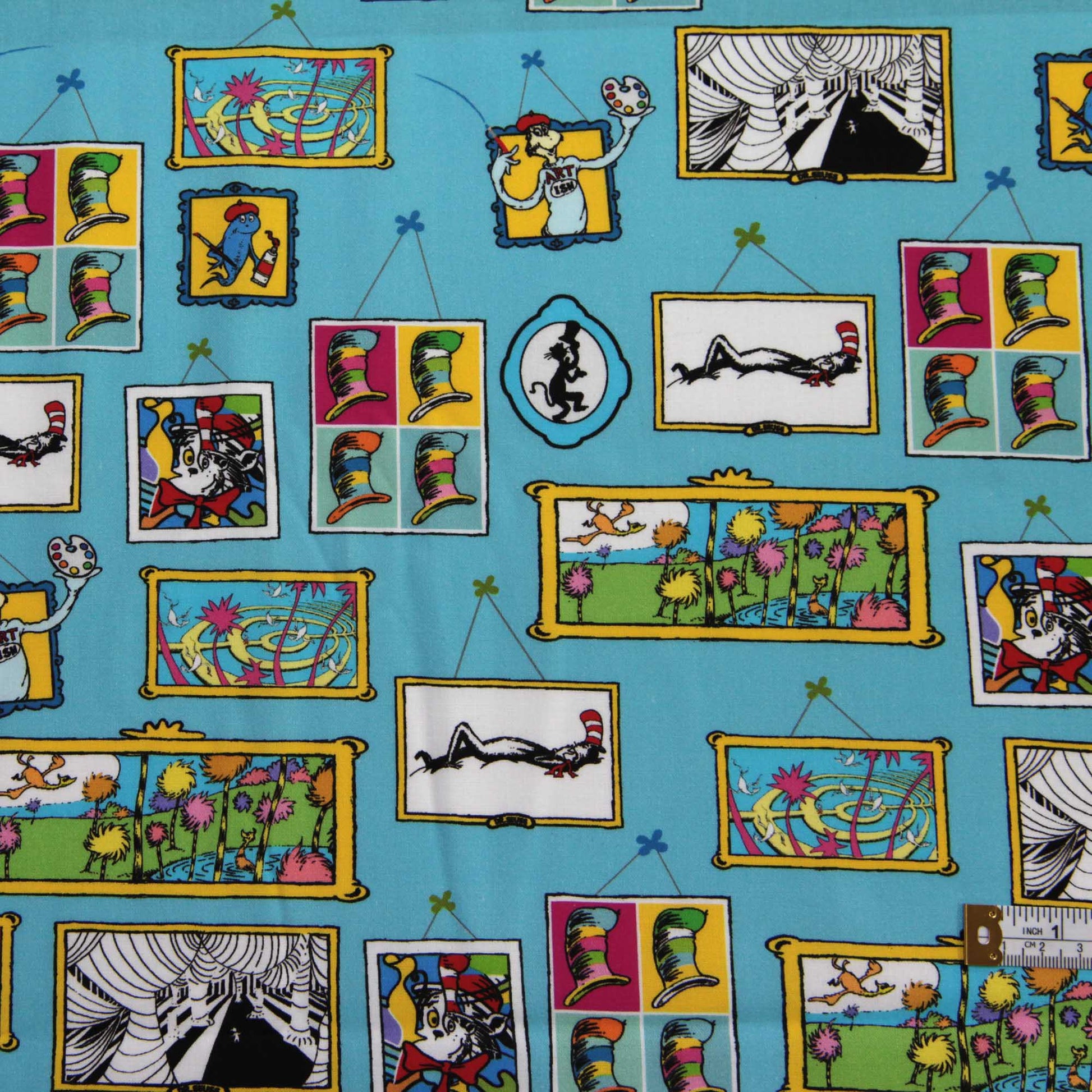 Picture frames with various characters and scenes from Dr. Seuss stories.