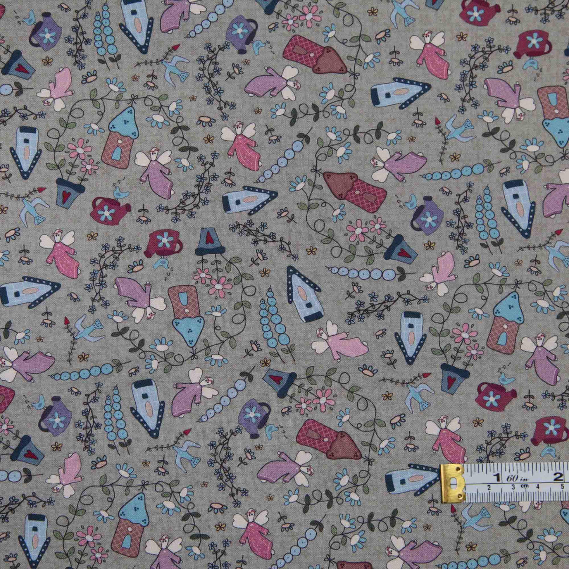 Lynette Anderson's latest collection and she's back to the more muted pastels that she's known for. Olive Green background makes the scattering of bird houses, fairies, birds and fauna pop