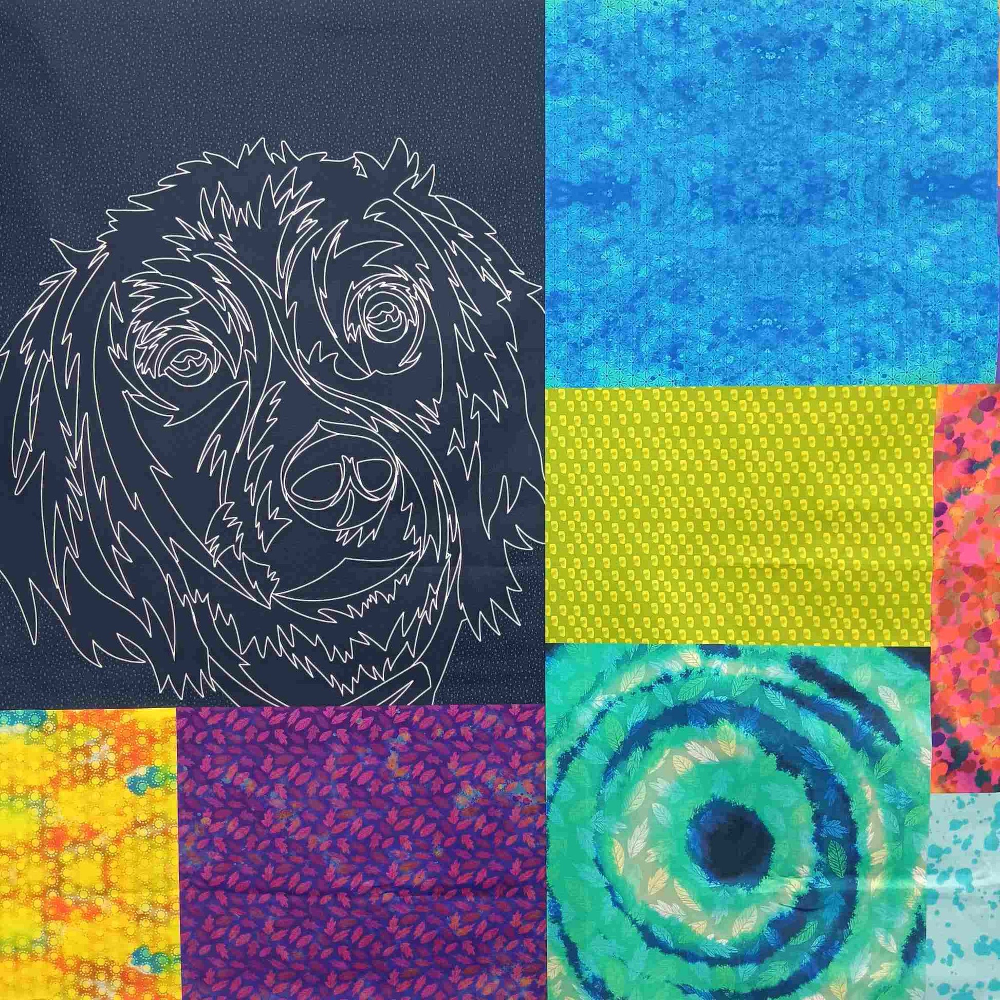 These are fun - do your own applique panel - includes pre-printed dog on a dark blue background measuring 51 x 51cm square. The rest of the panel is pre-printed fabric pieces that you can use as you wish to 'colour in' Lola. Full applique instructions are included and requires half metre of Steam-a-Seam or Vliesofix