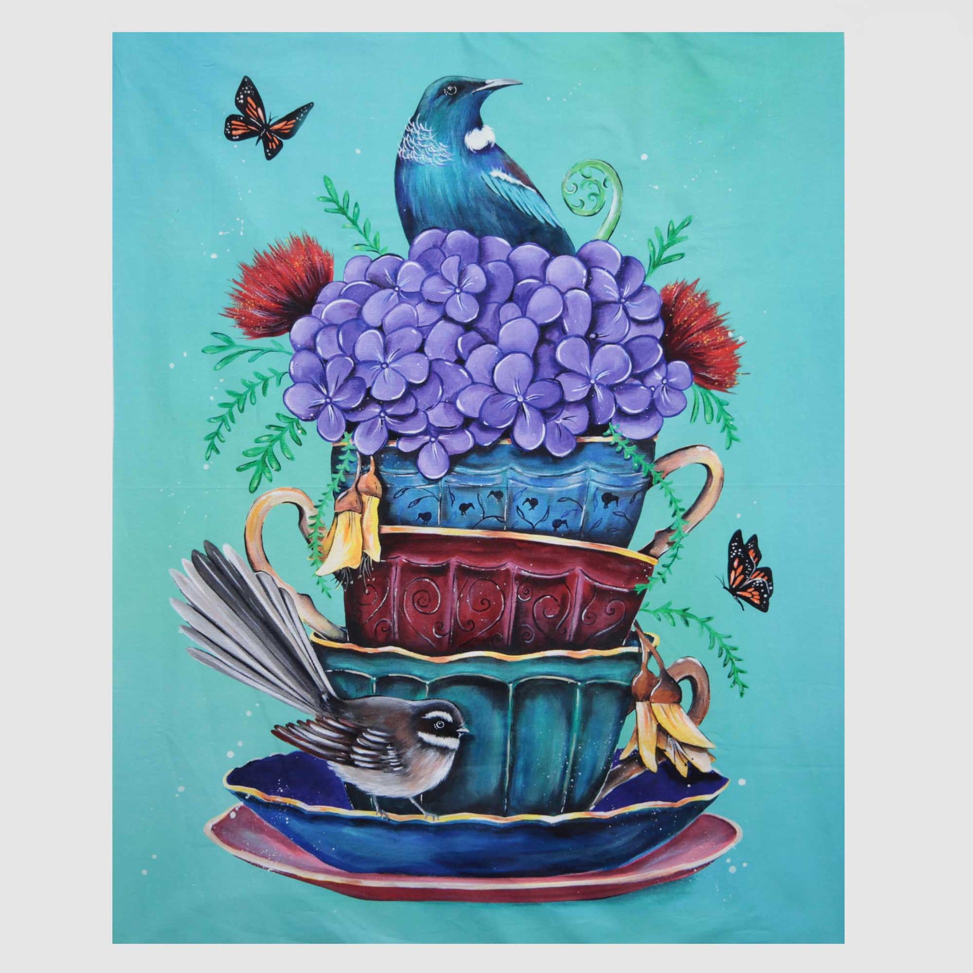 I am a sucker for Piwakawaka/Fantails and love the teal background of this panel. Fabulous centrepiece for a quilt or make an amazing wall hanging or piece of graphic art.