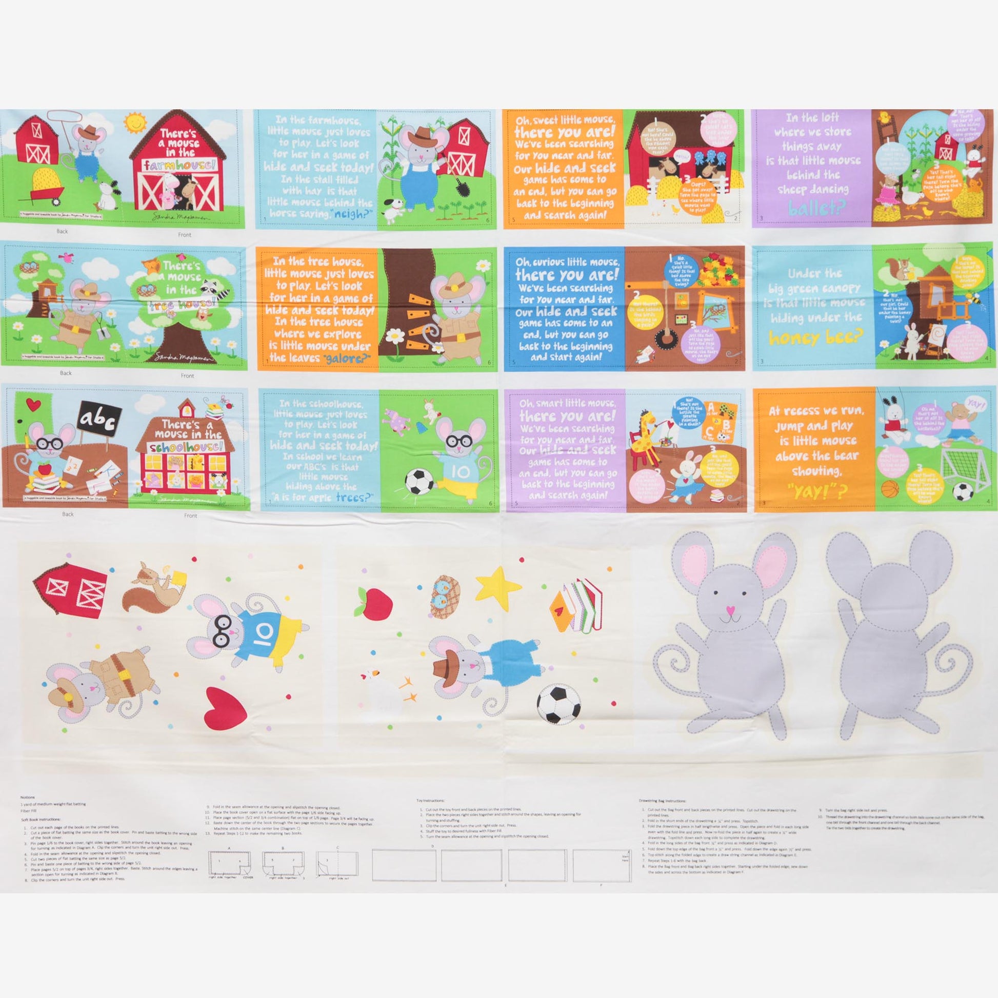 The book has an amazing 24 pages featuring the adventures of a mouse. You also get pre printed pieces to make a drawstring bag (22x32cm approx.) and a mouse toy
