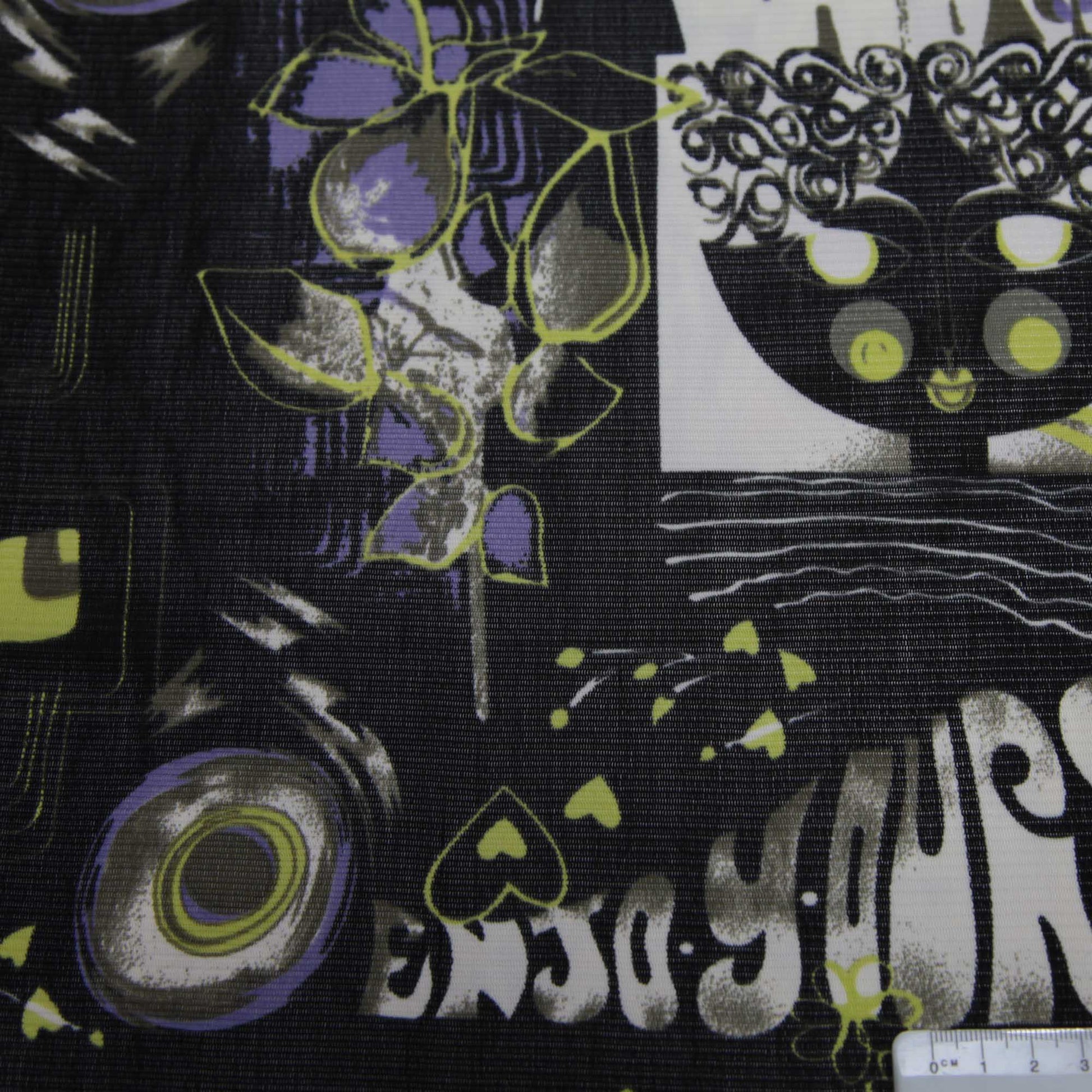 Black background with lime green and purple pattern including "Enjoy Yourself", butterflies and hearts