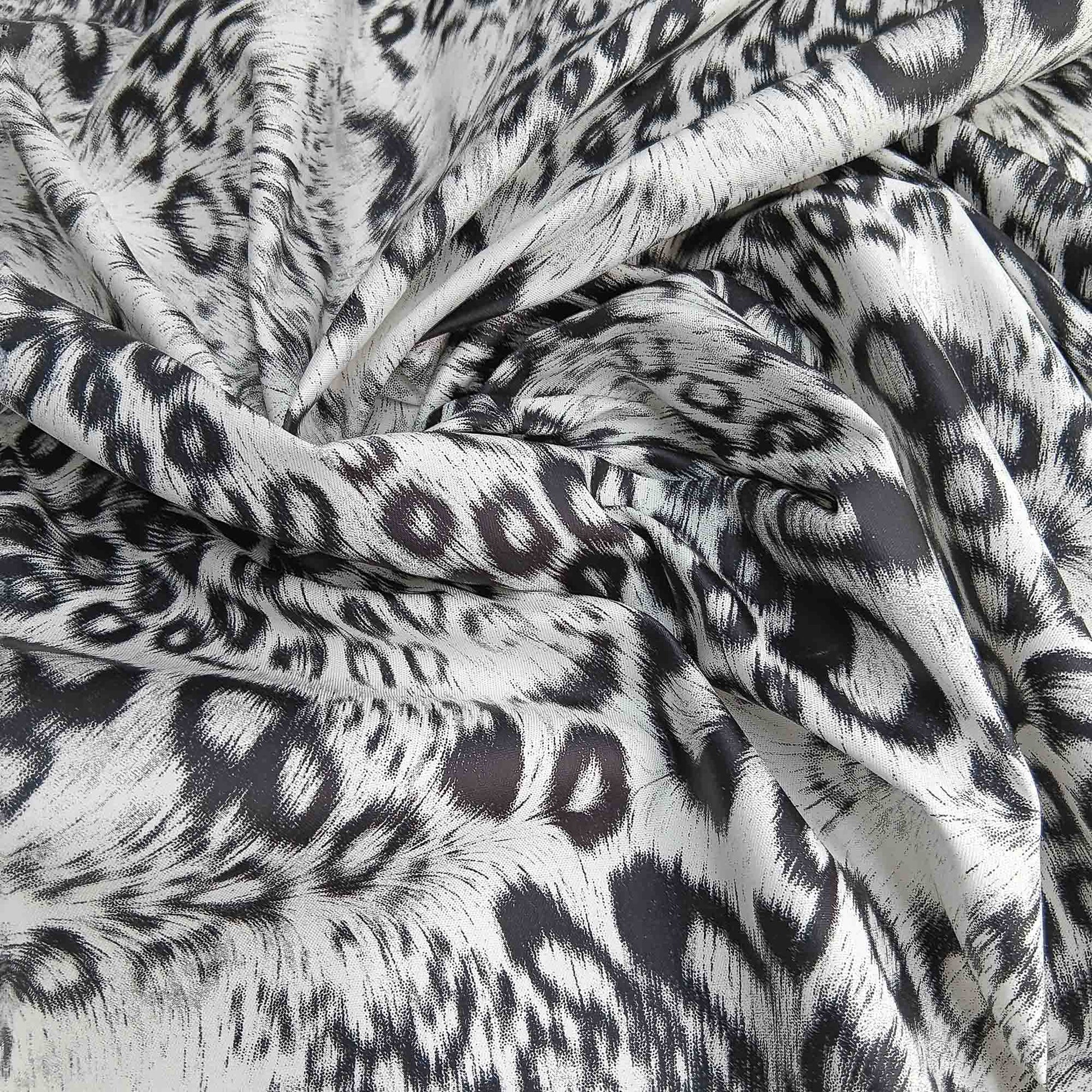 Slight stretch across the width of the fabric. Slight heavier and smooth cotton feel in a animal print - who can resist??