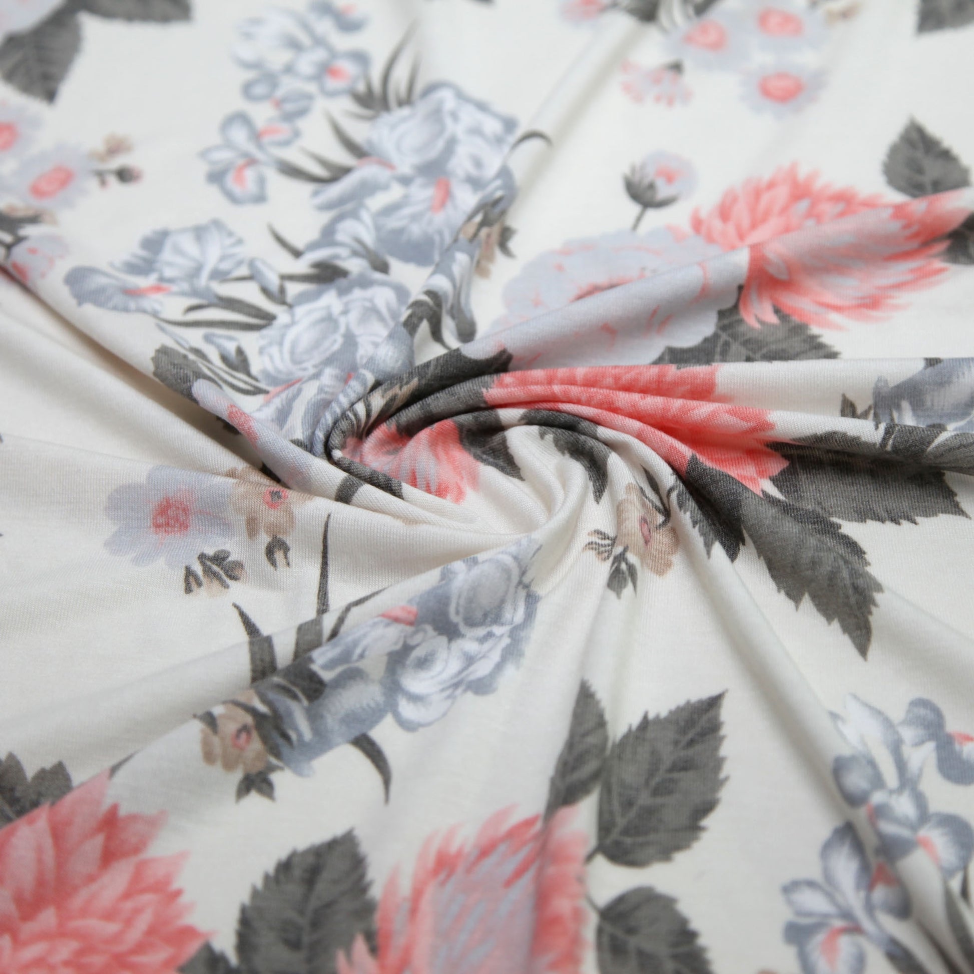 Printed Viscose Knit - Off White Floral