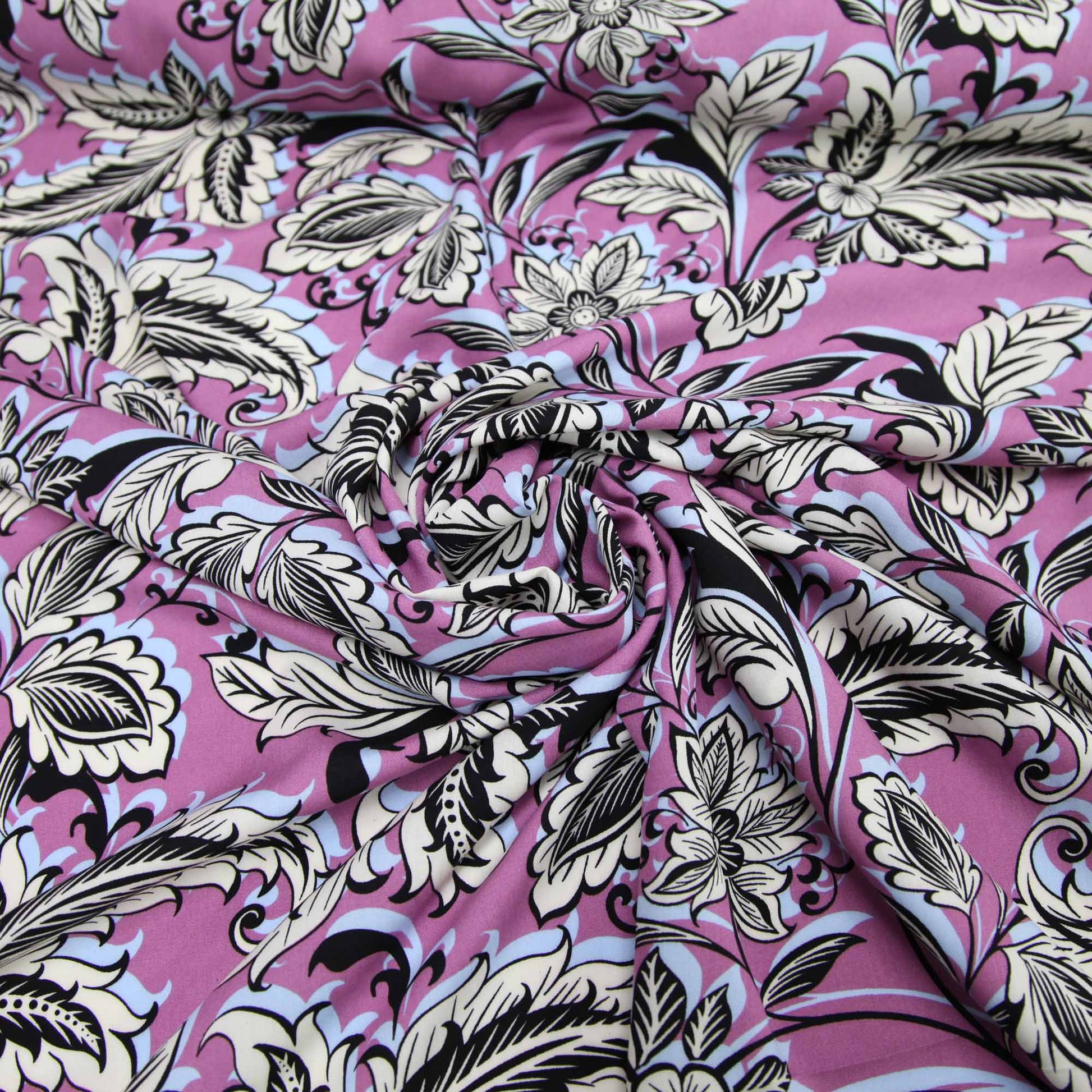 This is 100% rayon (wood fibre turned into cellulose strands). It is super soft, cool to wear and easy to work with