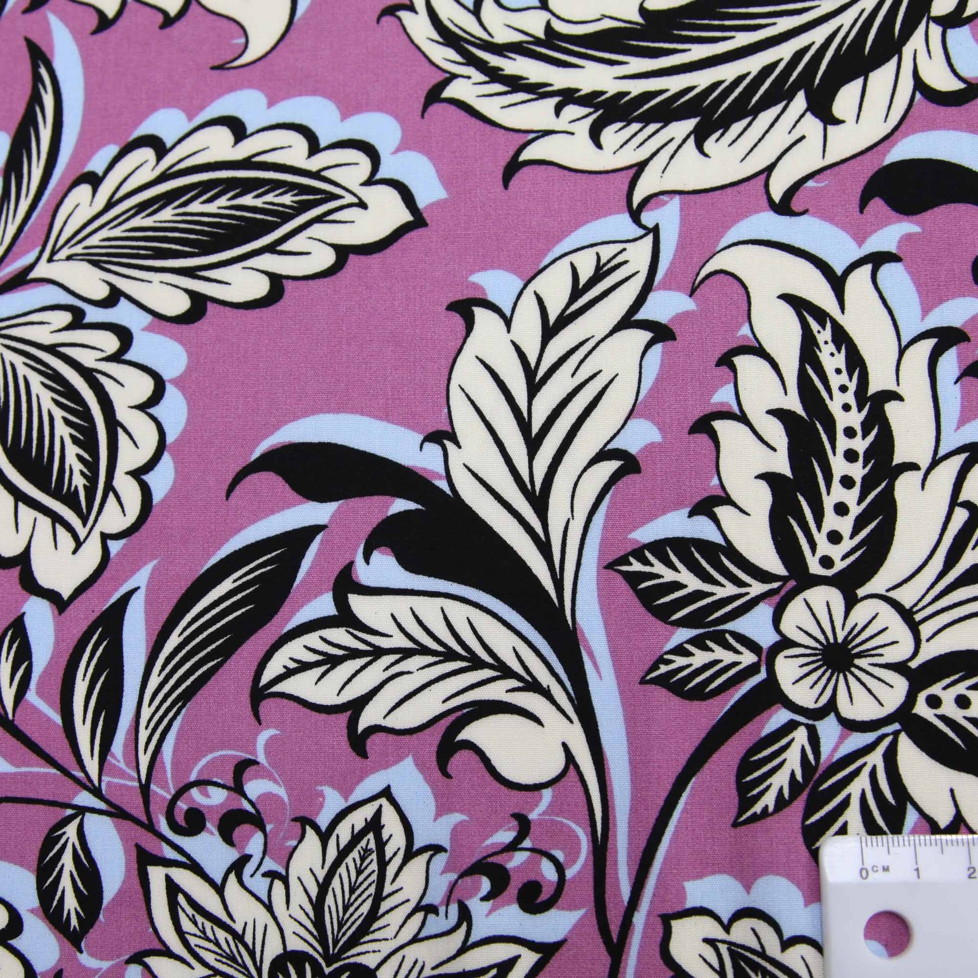 This has a pinky/purple background with black and white stylised leaves and flowers and a pale blue shadow to them
