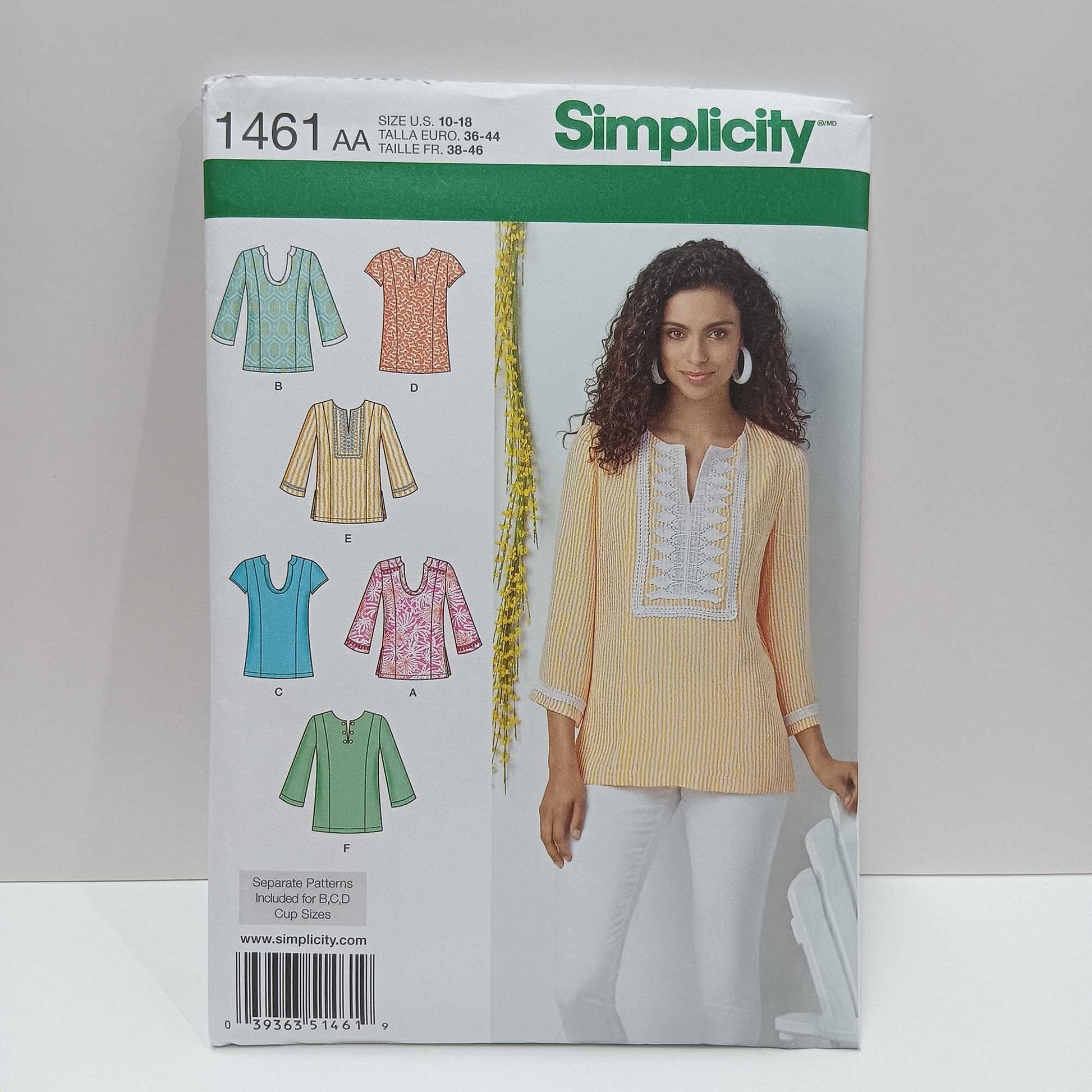 Misses and Womens tops with neckline and sleeve variations. Separate pattern pieces for bra sizes B-DD