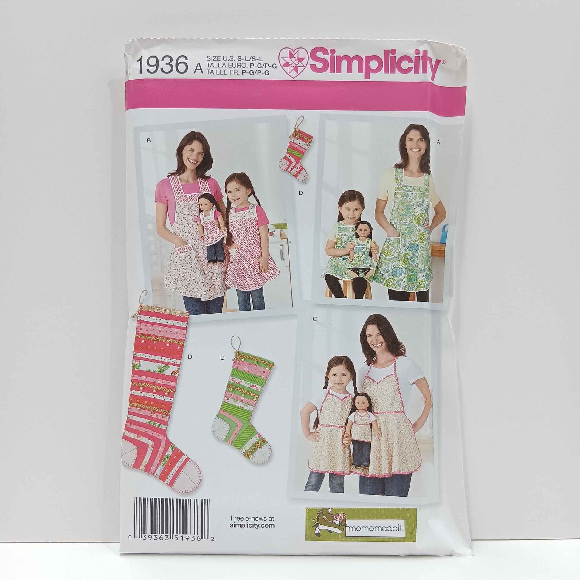 Child's, Misses and 18" Doll Aprons plus bonus stocking ornaments in three sizes