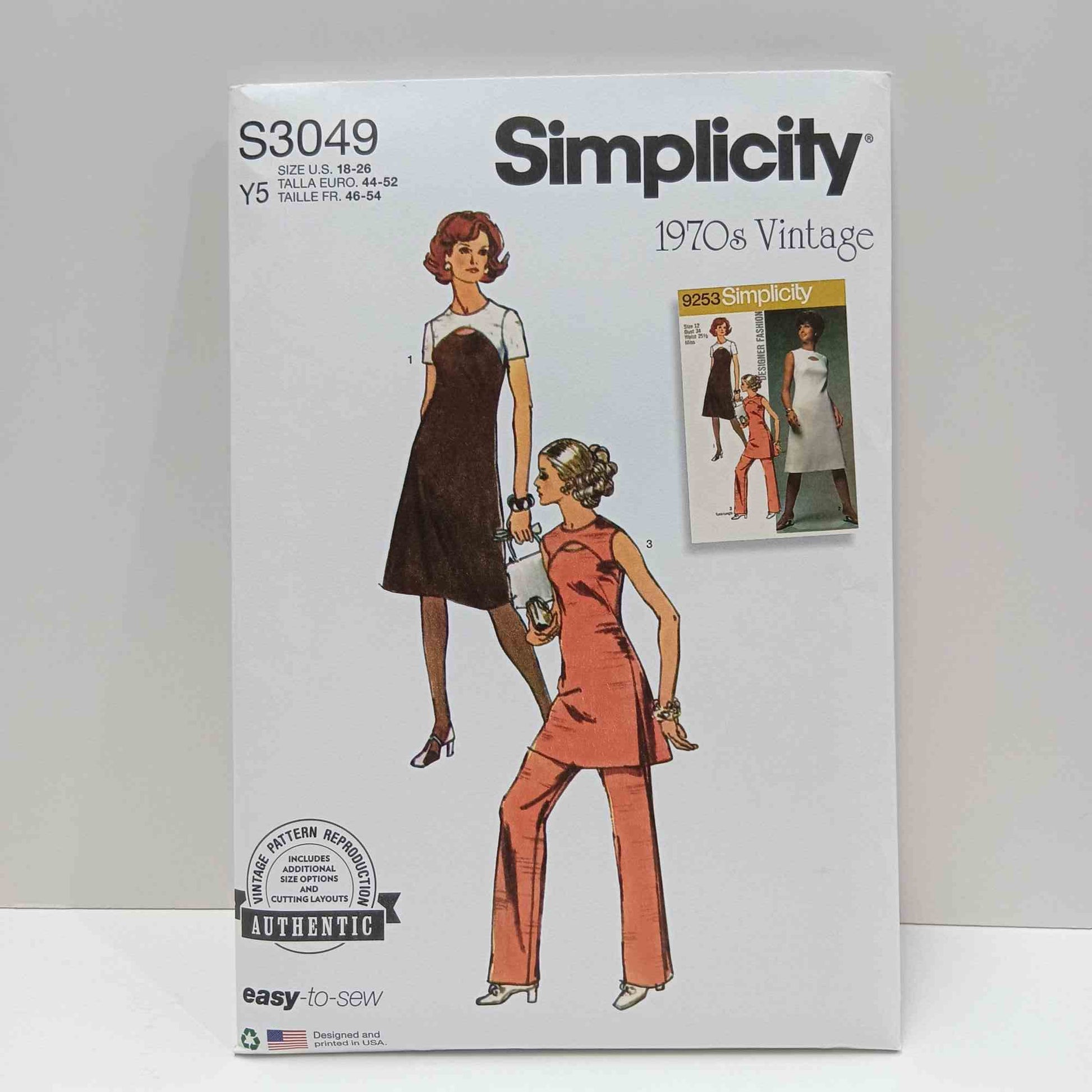 S3049 Vintage 1970s Dress, Tunic and Pants