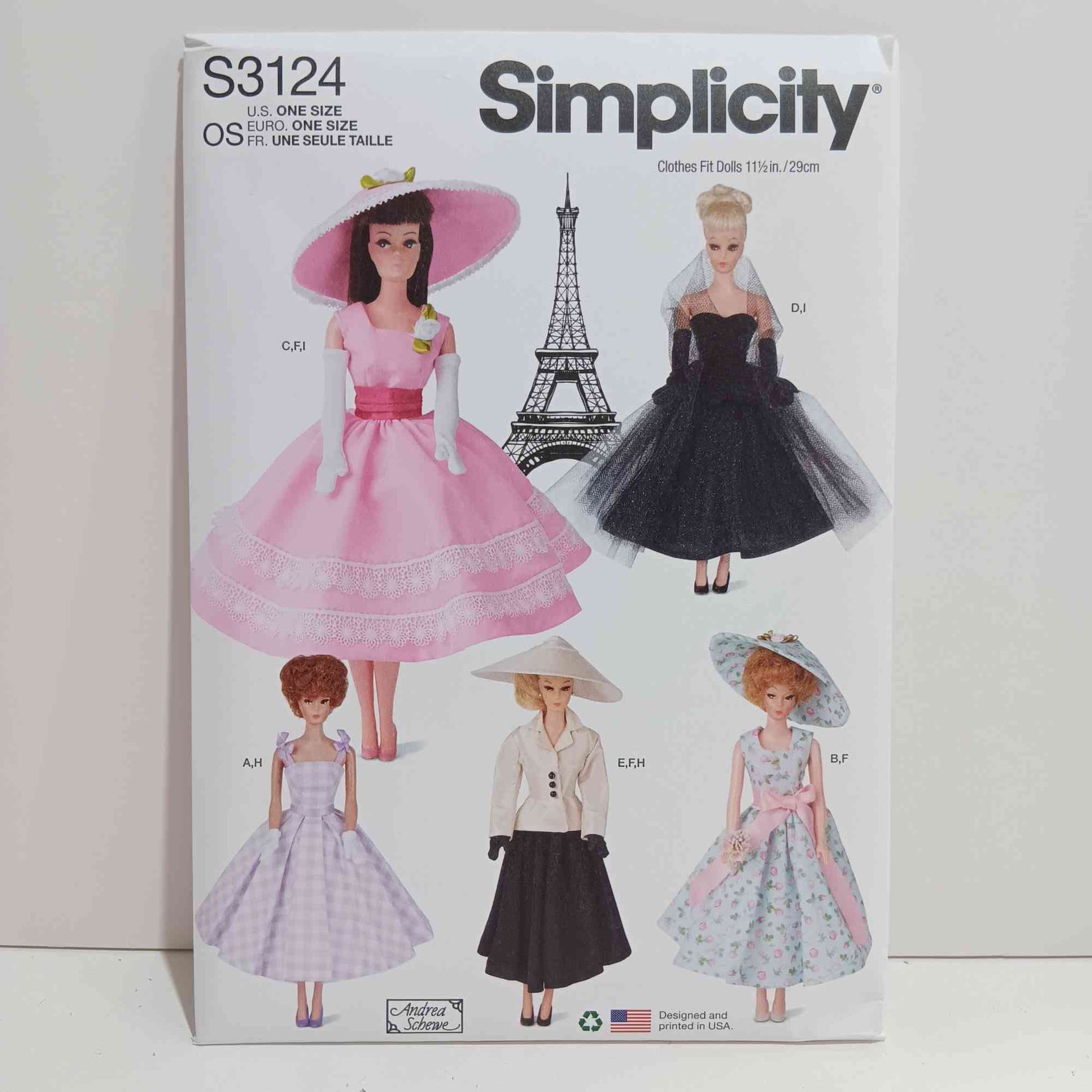 Dresses, bodice and peplum, suit jacket, hat, petticoat, short and long gloves for Barbie dolls