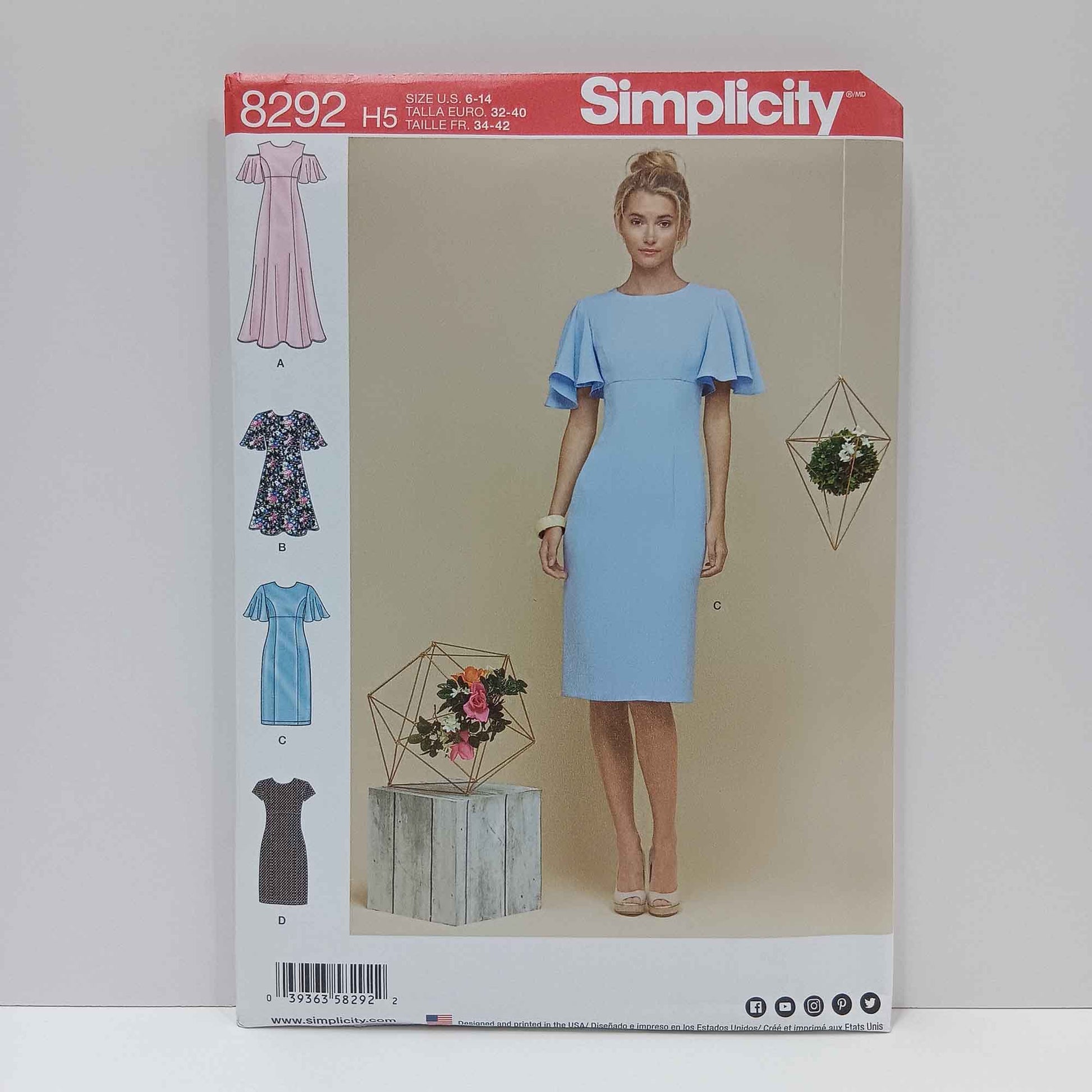 Misses dress with empire waist in four variations - sleeve, skirt and length options. Centre back zip