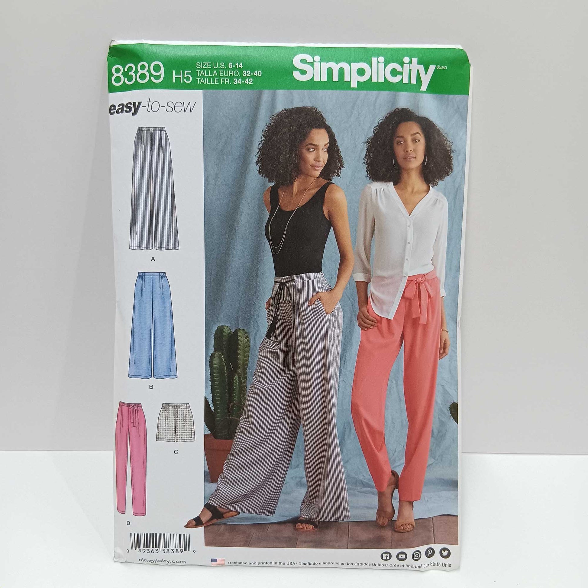 Loose fitting pants with length and width variations and tie belt. Side seam pockets