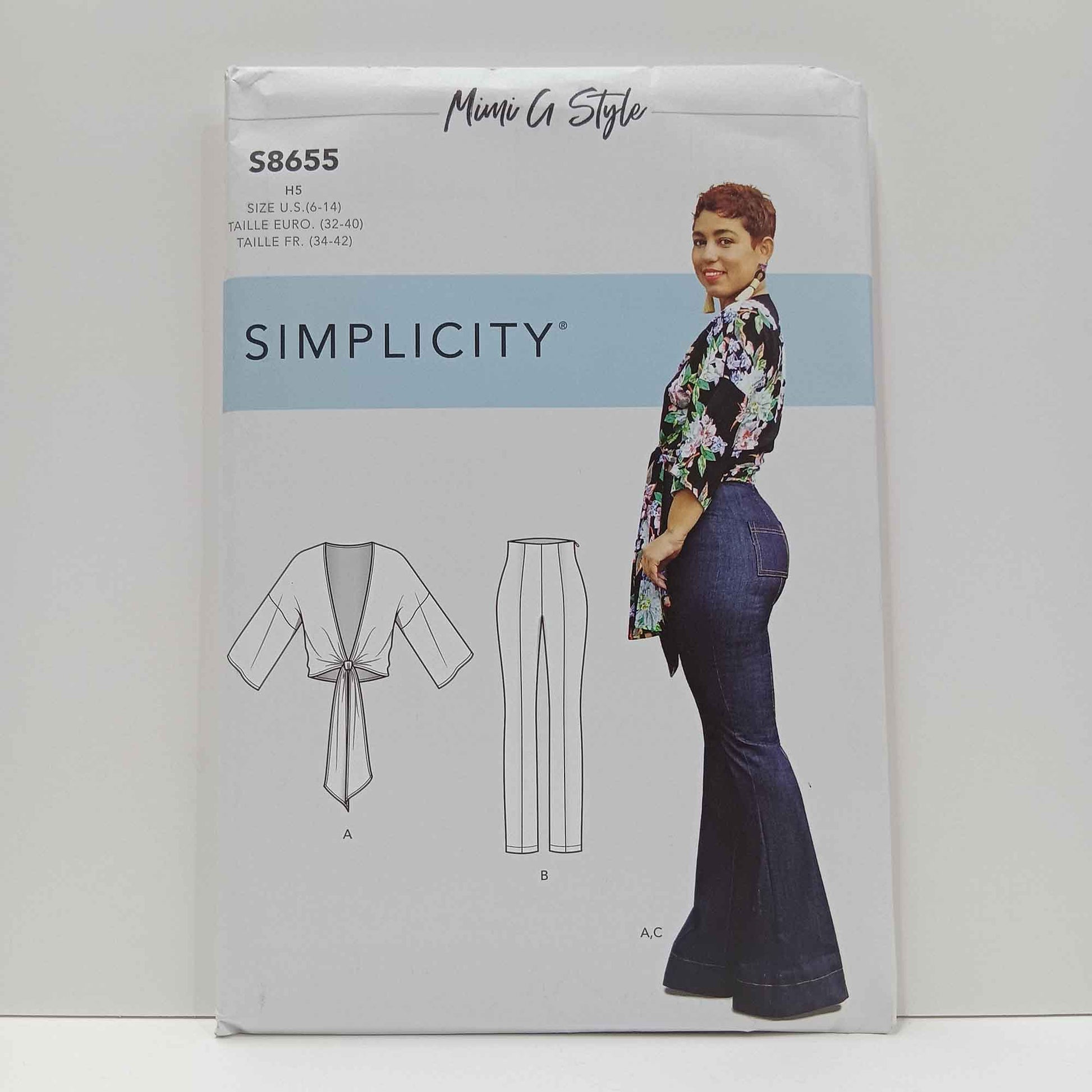 Misses high waisted slim or bell bottom pants/jeans and tie front top