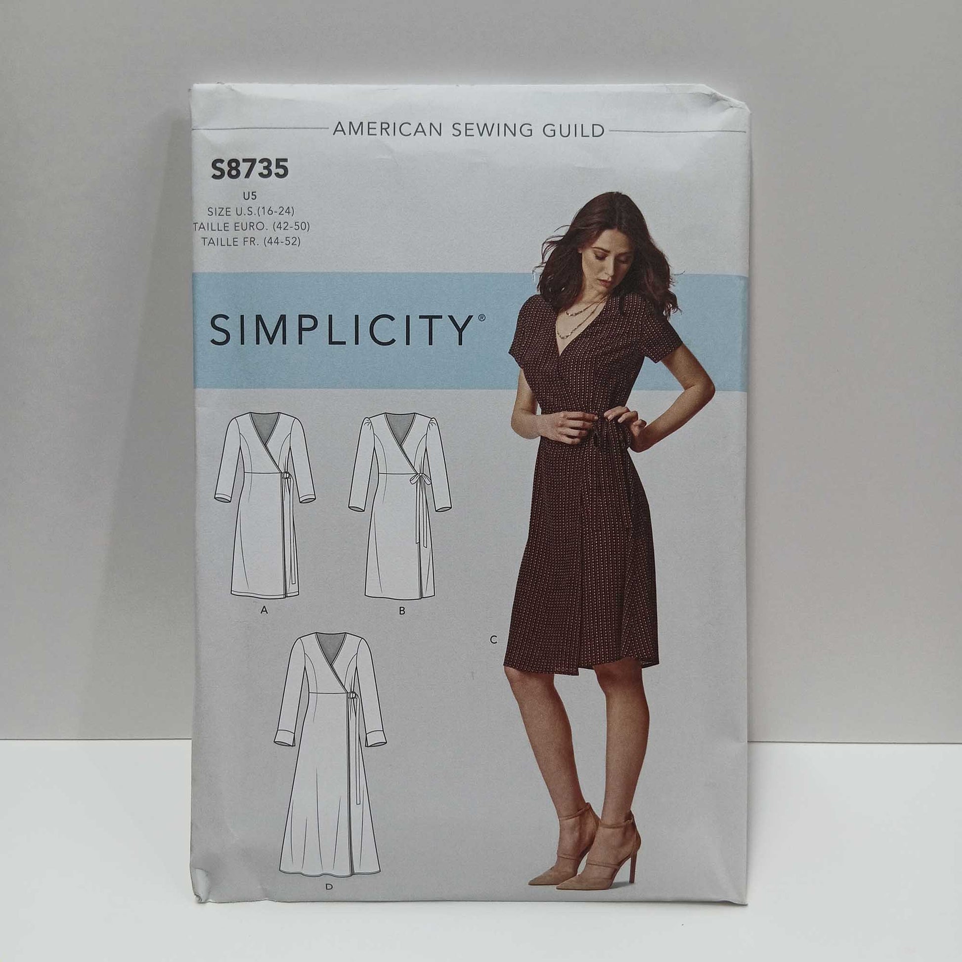 Wrap dress with flared skirt in two lengths. Separate pattern pieces for B, C, D, DD cup sizes