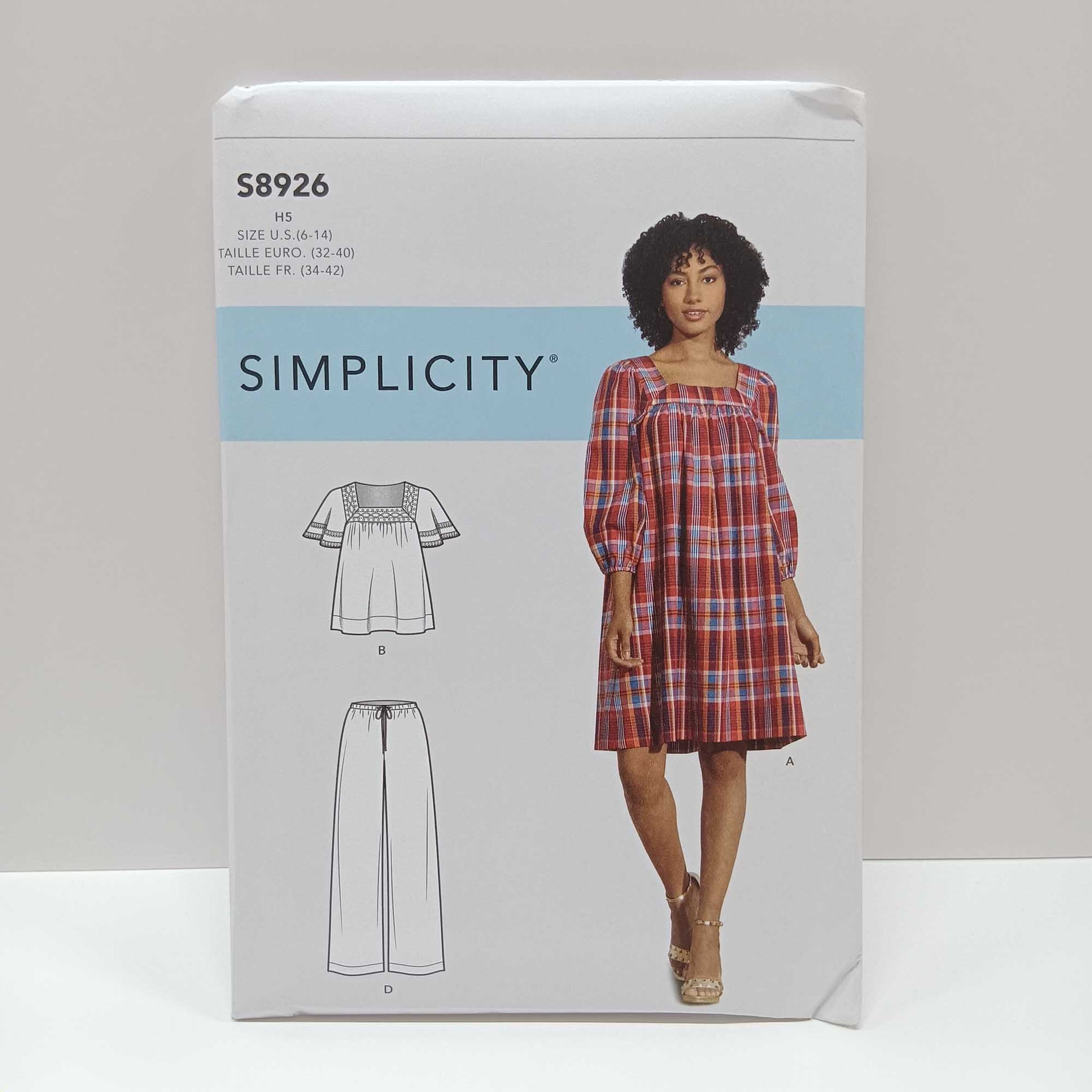 Loose fitting top or dress in three lengths, Pull on pants in two lengths with elastic waist and side seam pockets