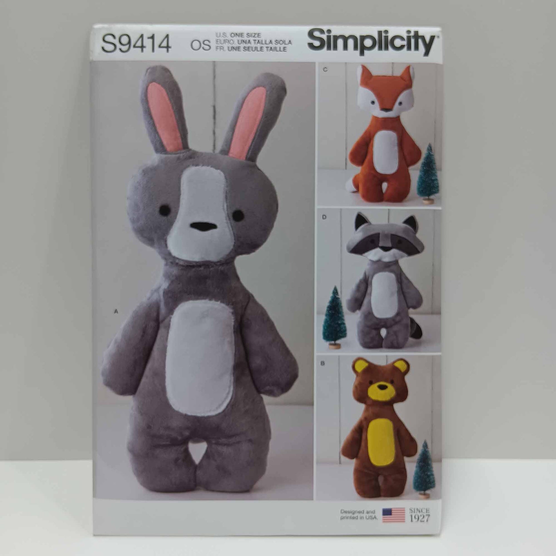 Stuffed animals - bunny (140.5cm long), bear, fox and raccoon (all 35.5cm long)
