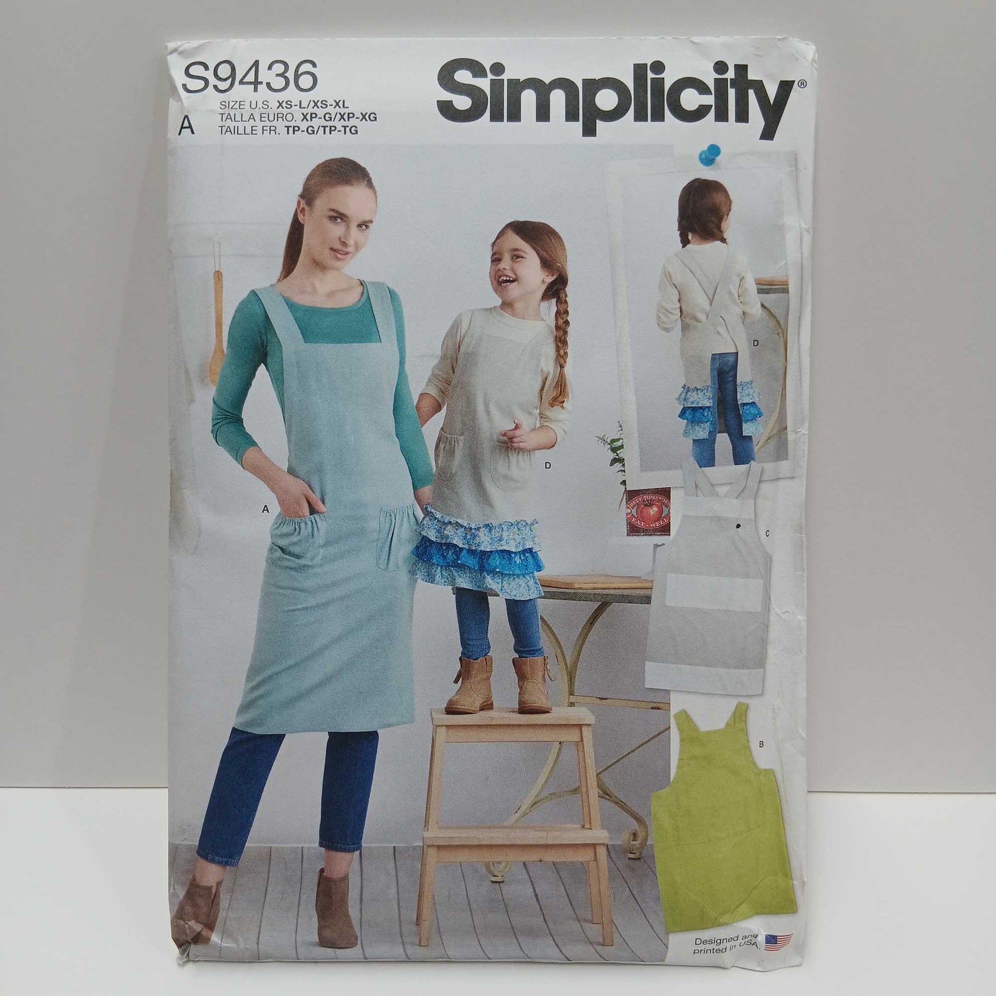 Adults and children's aprons in four designs