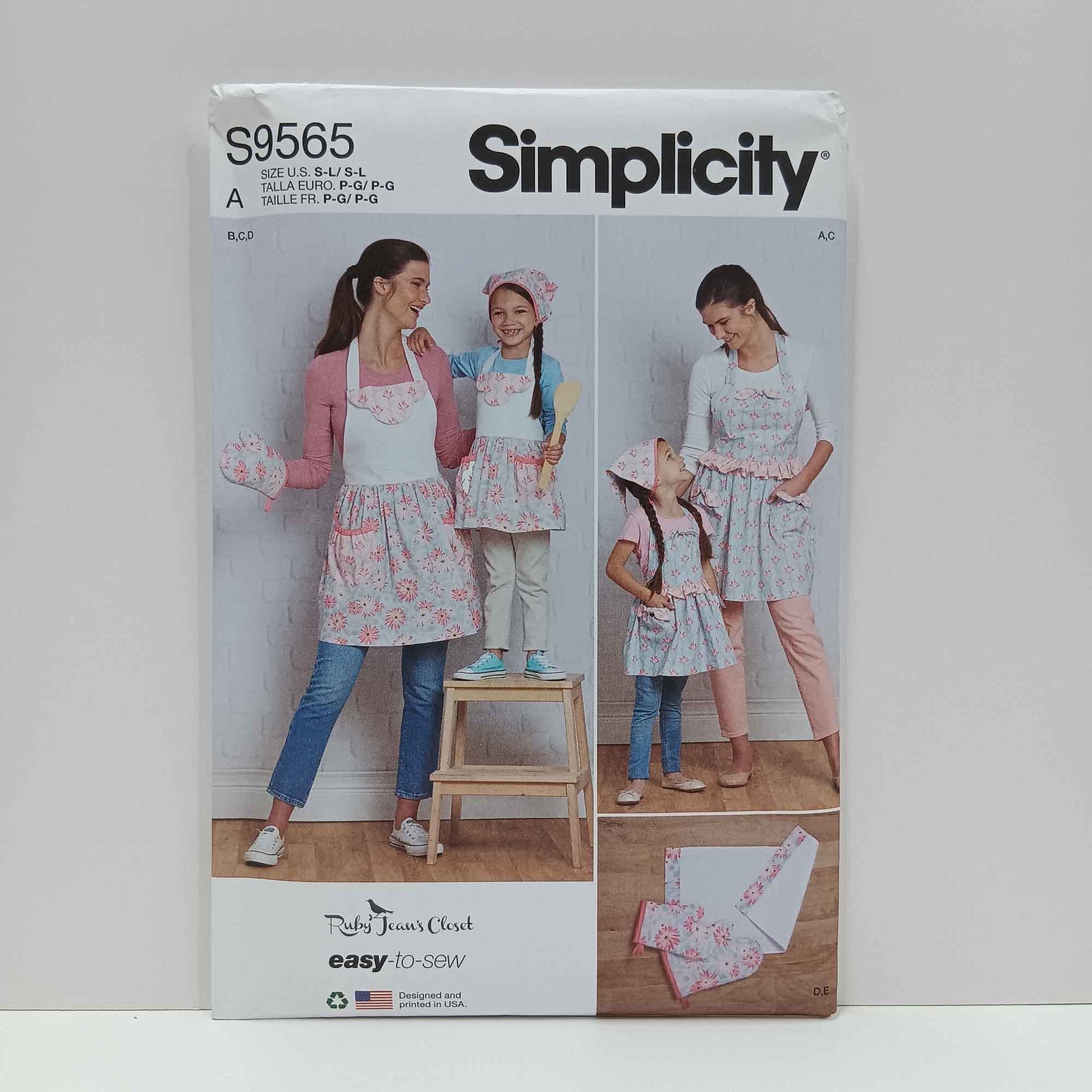 Childrens (sizes S-L) and MIsses (sizes S-L) aprons, head scarf, oven mitt and towel