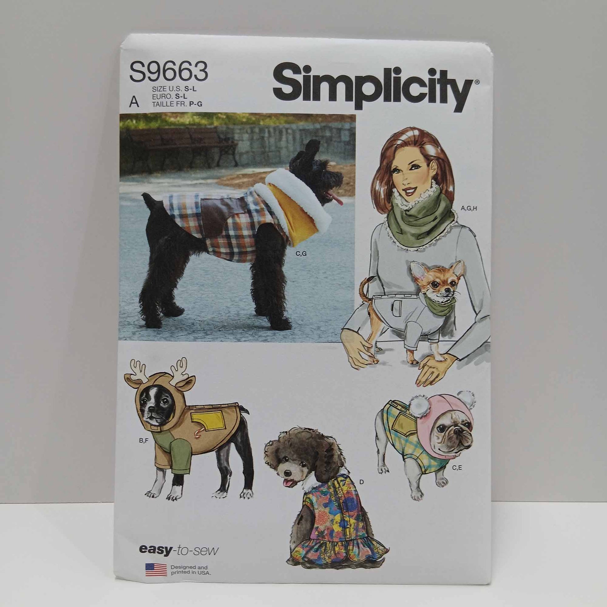 Pet coats with optional hoods and cowls in sizes S, M, L and adult cowl/neck warmer