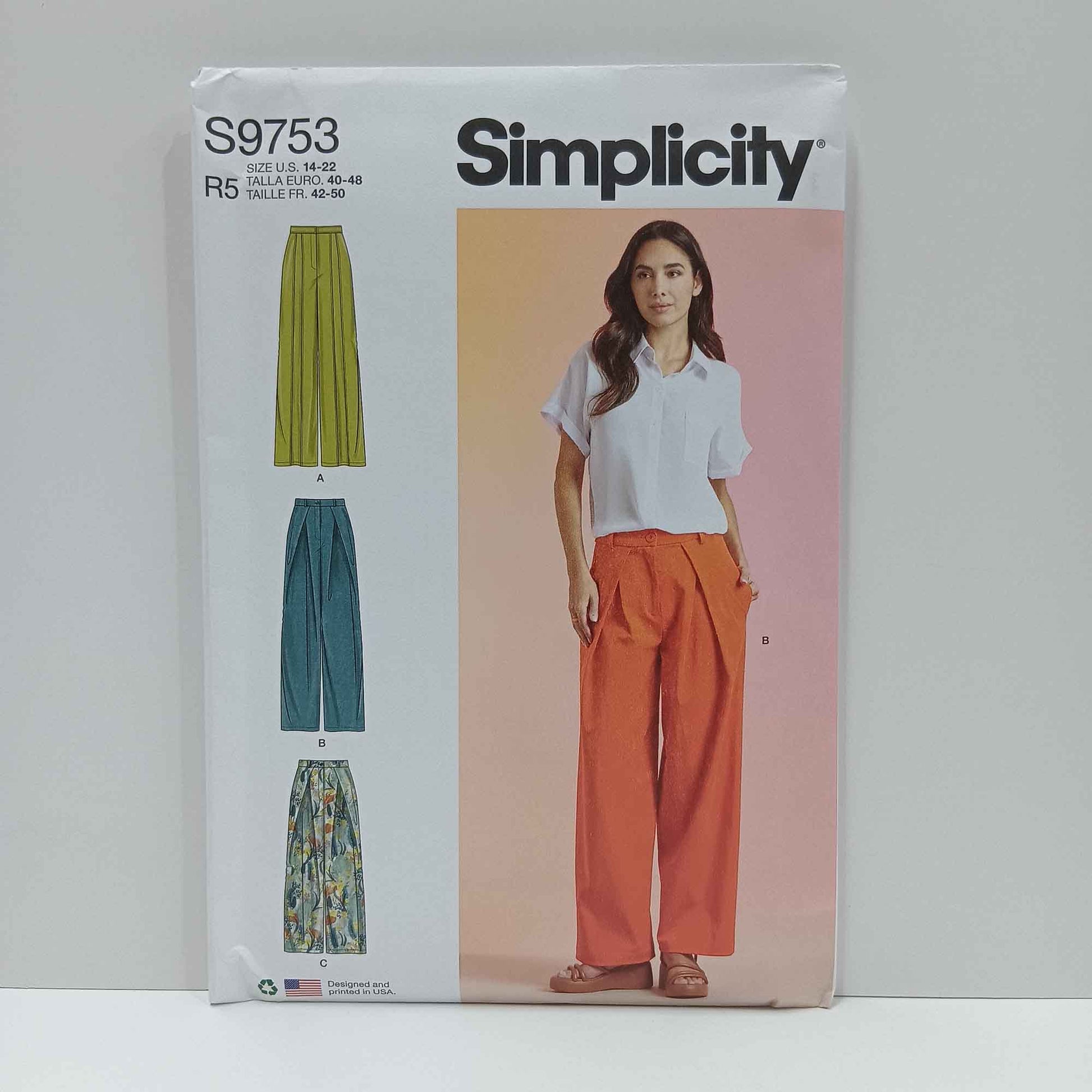 Loose fitting pants with front pleats, length and leg variations. Side seam pockets