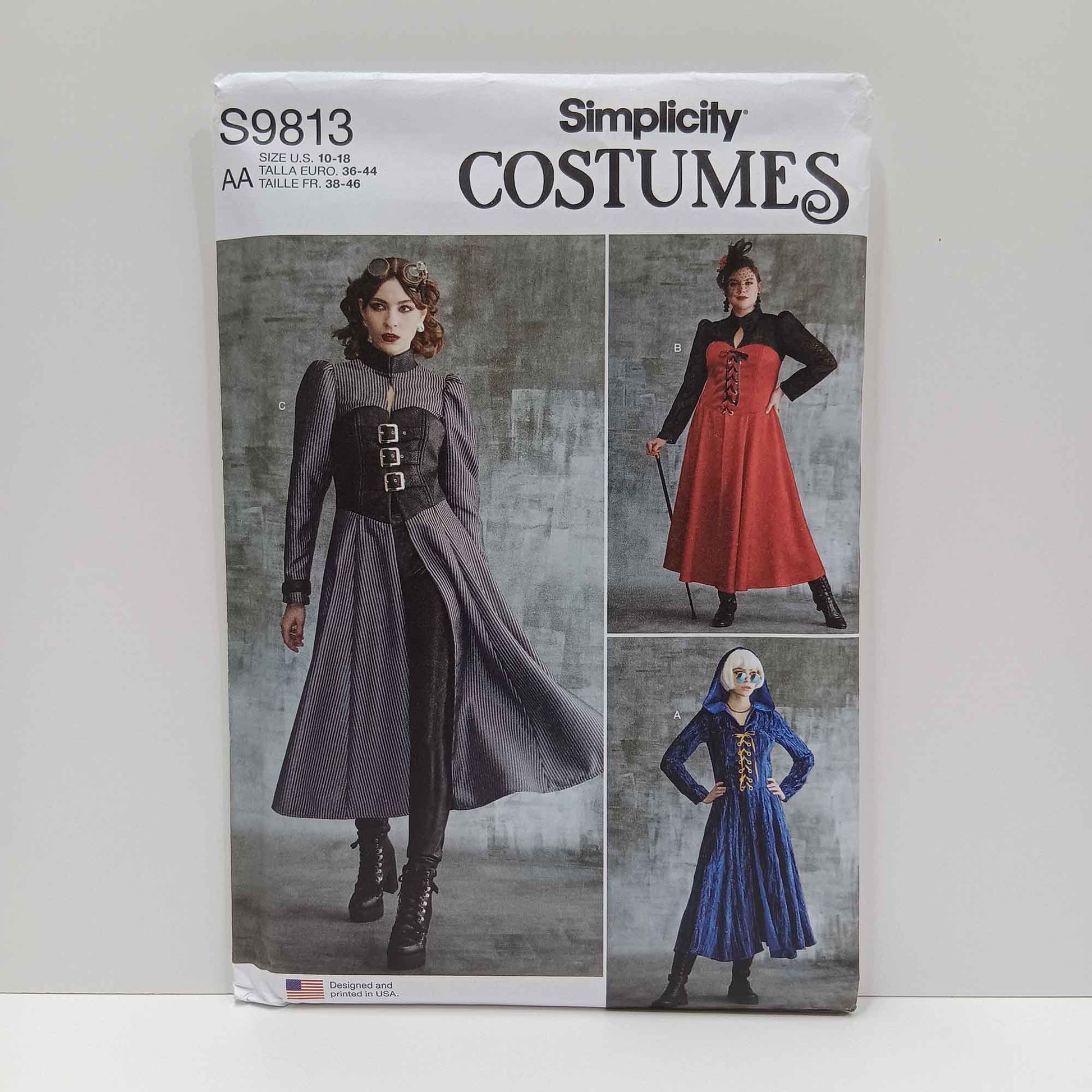 Hooded dress with or without corset could be worn for a steampunk event. Three variations