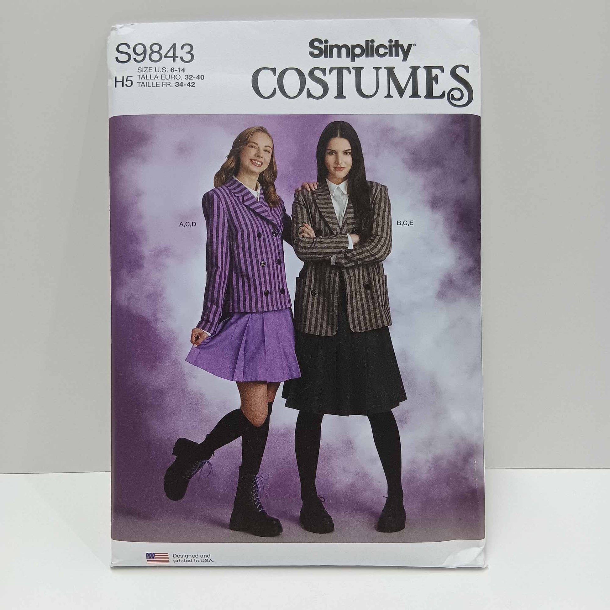 Three jacket variations and two pleated skirt variations to create a school girl costume from a gothic school which may be worn on a Wednesday??