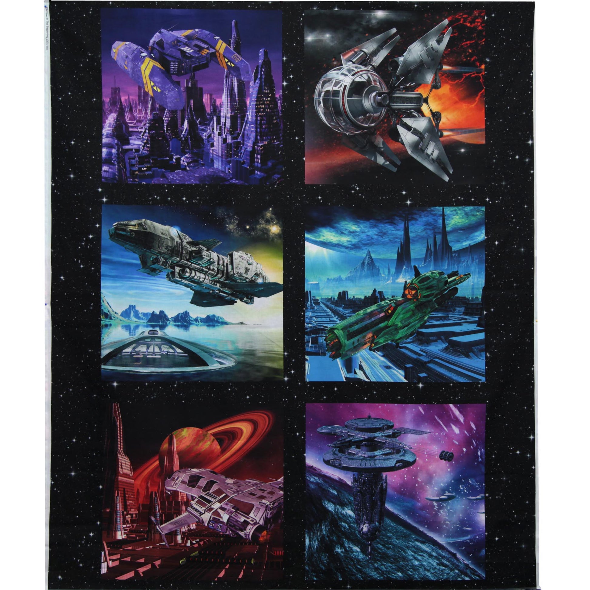 Stunningly digitally printed sci-fi panel depicting six separate frames of various other-worldly scenes. Each frame is approx 40 x 40cm. Overall panel length is 1.3m