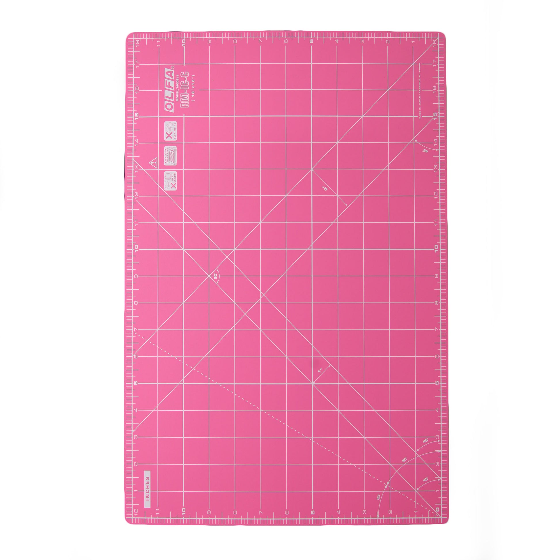 We use these in the shop for cutting most of our fabrics on. The pink and heavy duty options have a metric grid on one side and imperial on the other. All other mats are single-sided with imperial measurement grids.