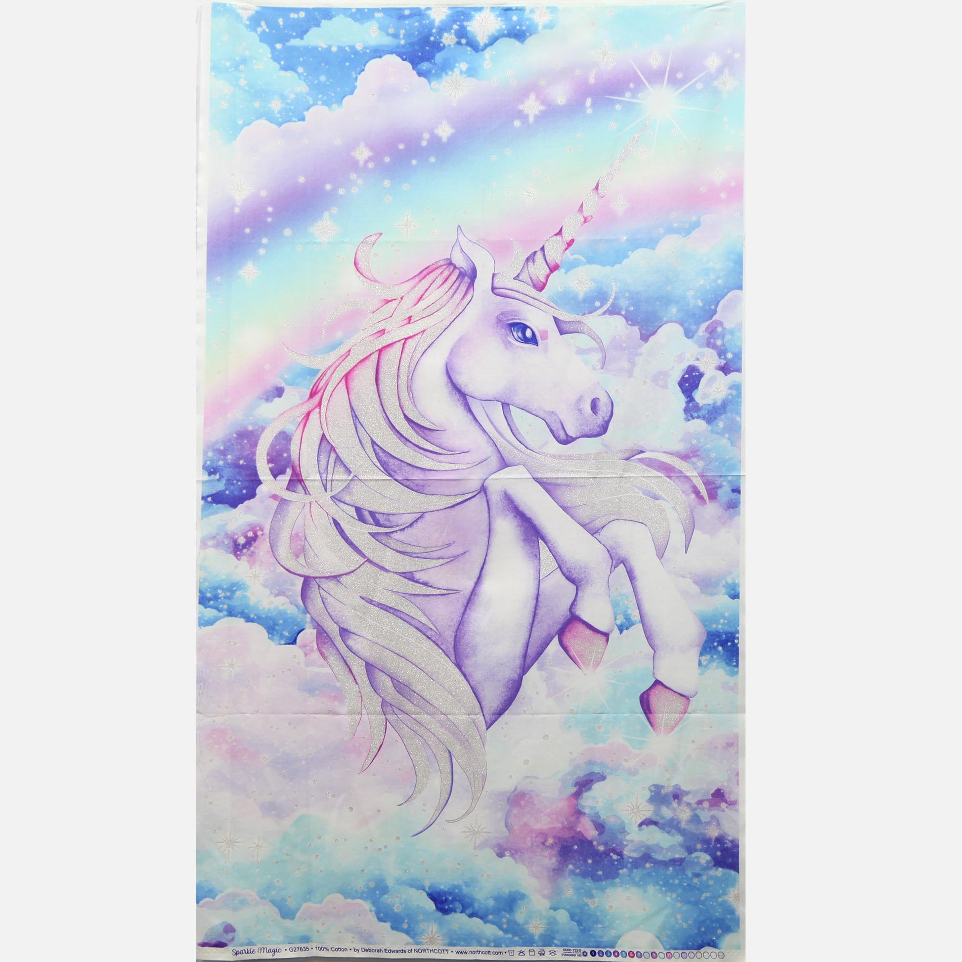 "It's so sparkly!!" is what you'll be saying in your head when you see this unicorn panel. Lots of silver sparkle, and lots of pink, purple and blue unicorn. Your daughter, grand daughter or niece (maybe even you) will love this on your bed, or just hang it on the wall.