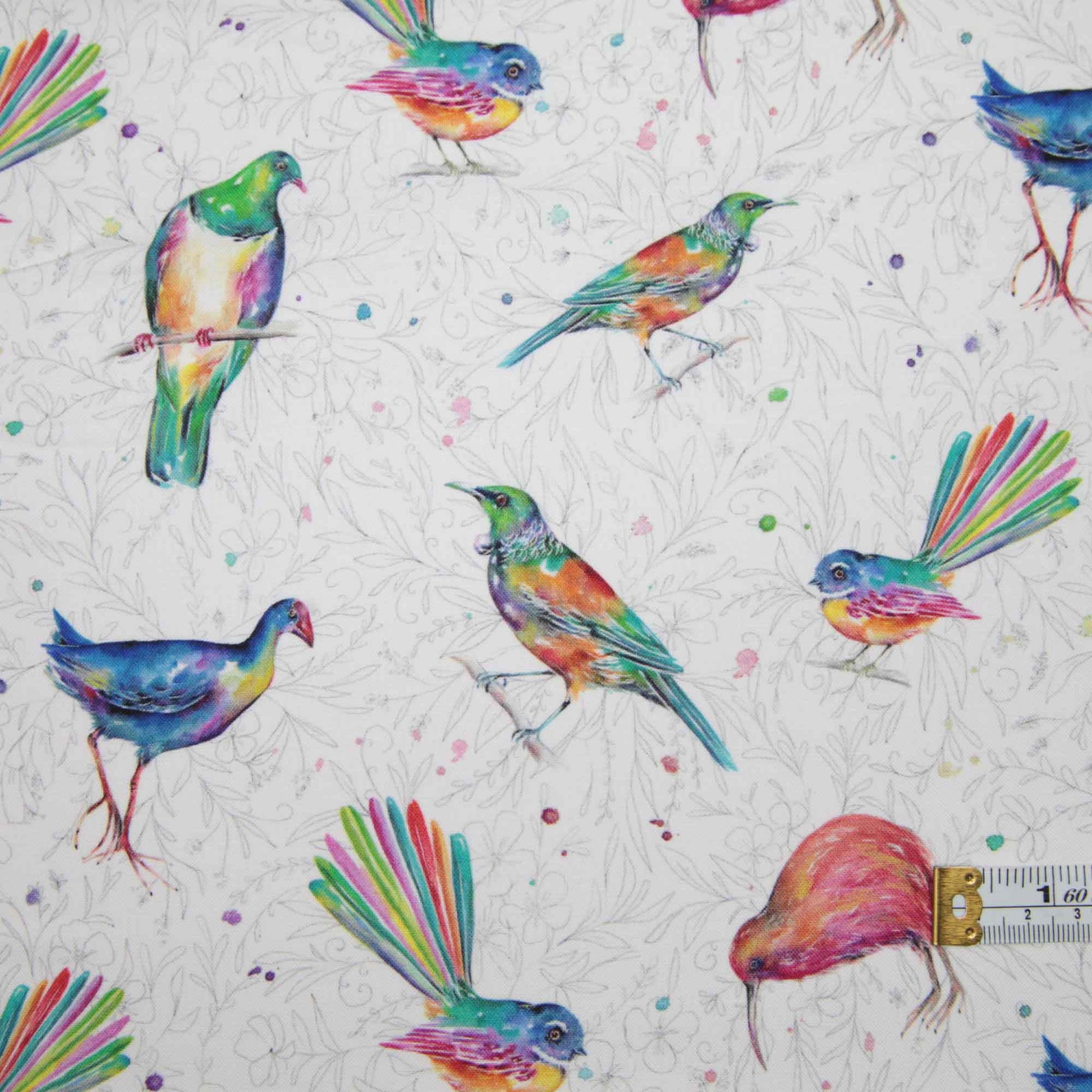 Gorgeous NZ native birds - big bold colours - on a white background.