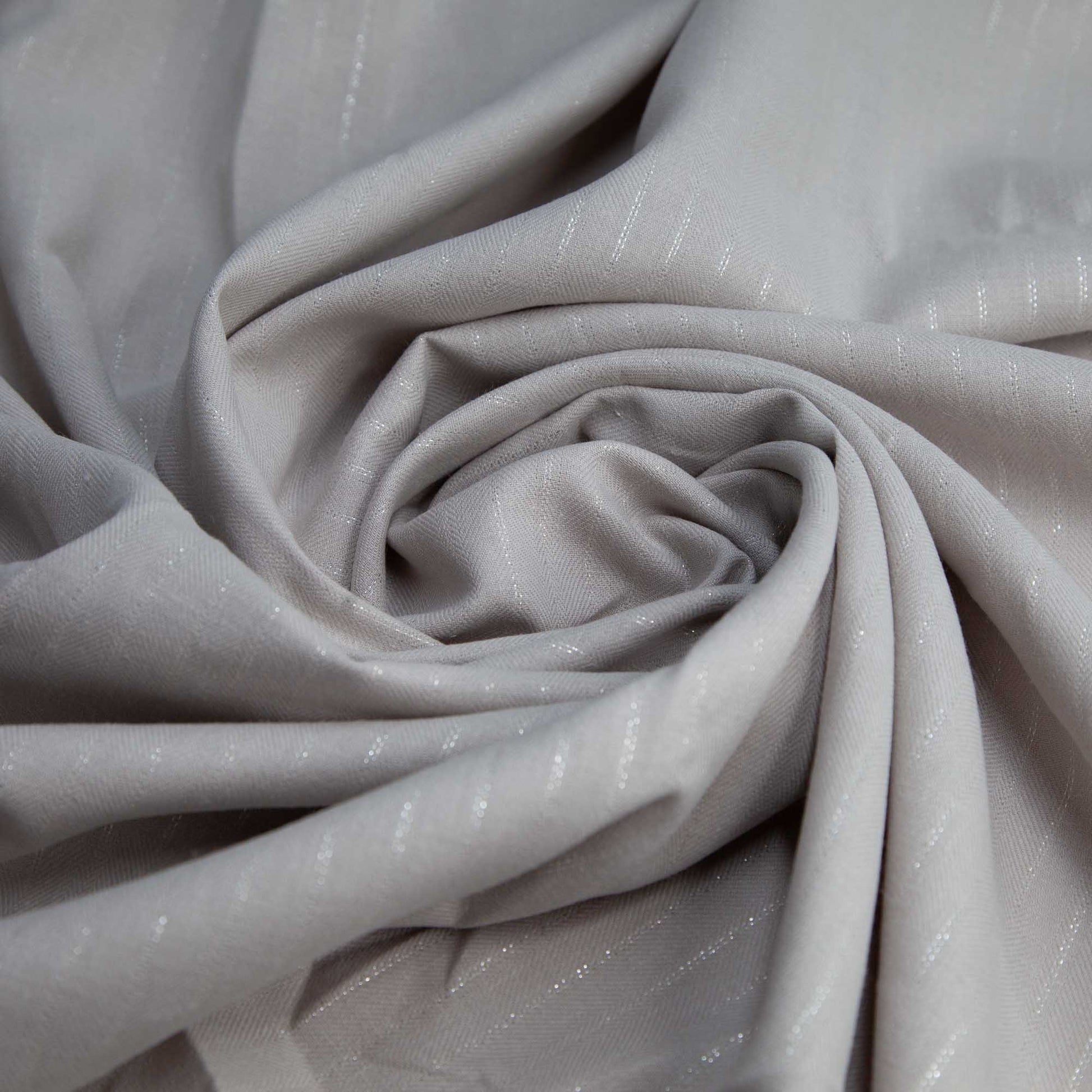 Natural coloured linen with a silver thread woven into at 12mm intervals along the length of the fabric - a little bit of sparkle