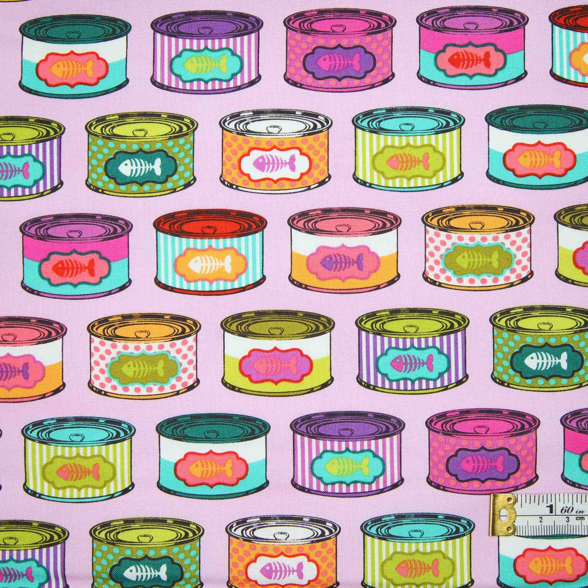 Cans of cat food in typical Tula Pink colours - looks good enough to eat