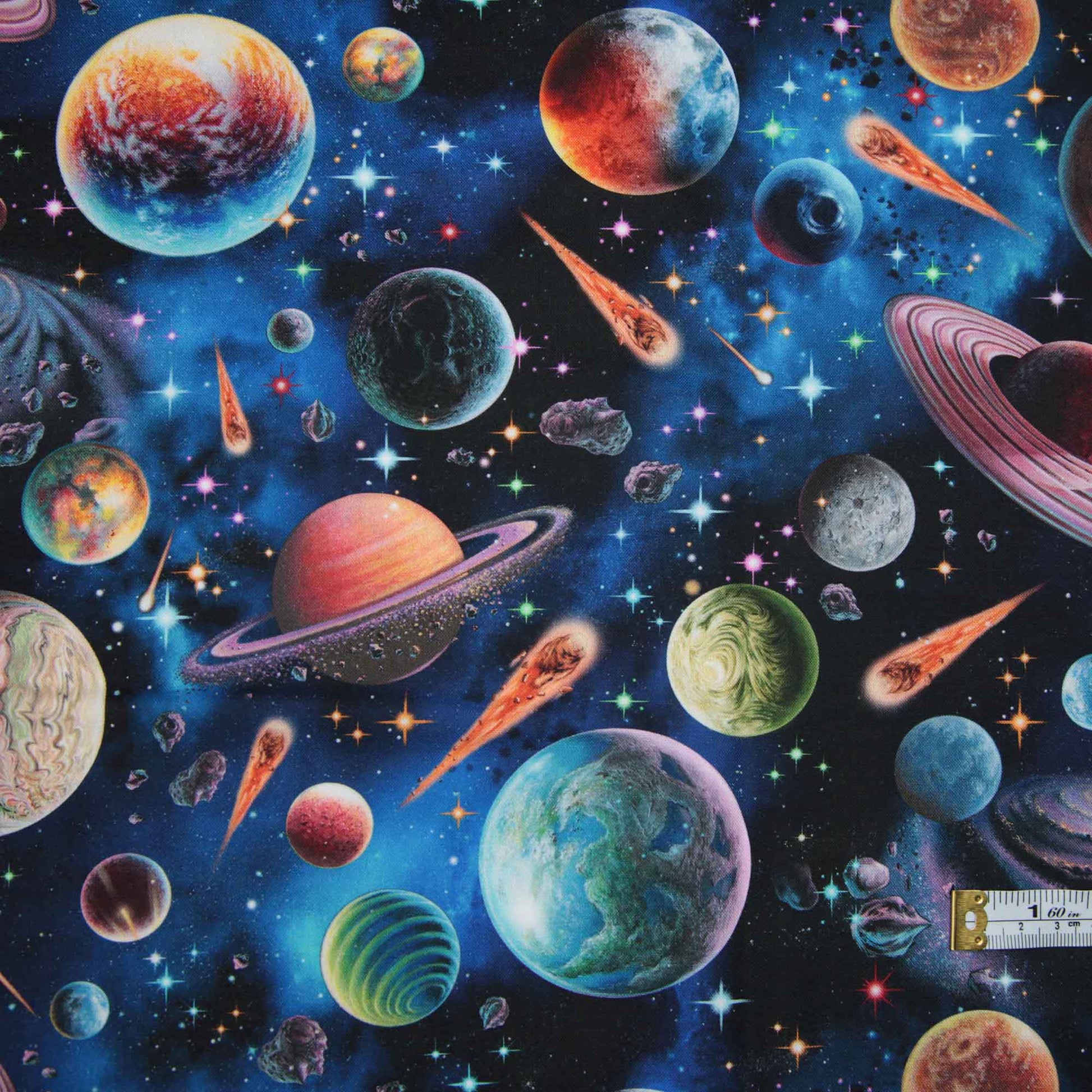 Designed by Mark Gregory - I am fascinated by space and couldn't resist these fabrics - lots of planets in bright, bold colours and amazing detail