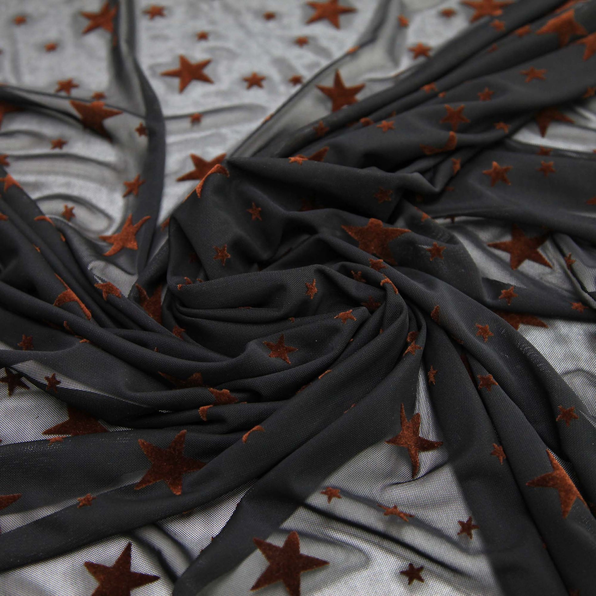 Any wanna-be wizards out there - see through black stretch mesh with flocked bronze coloured stars
