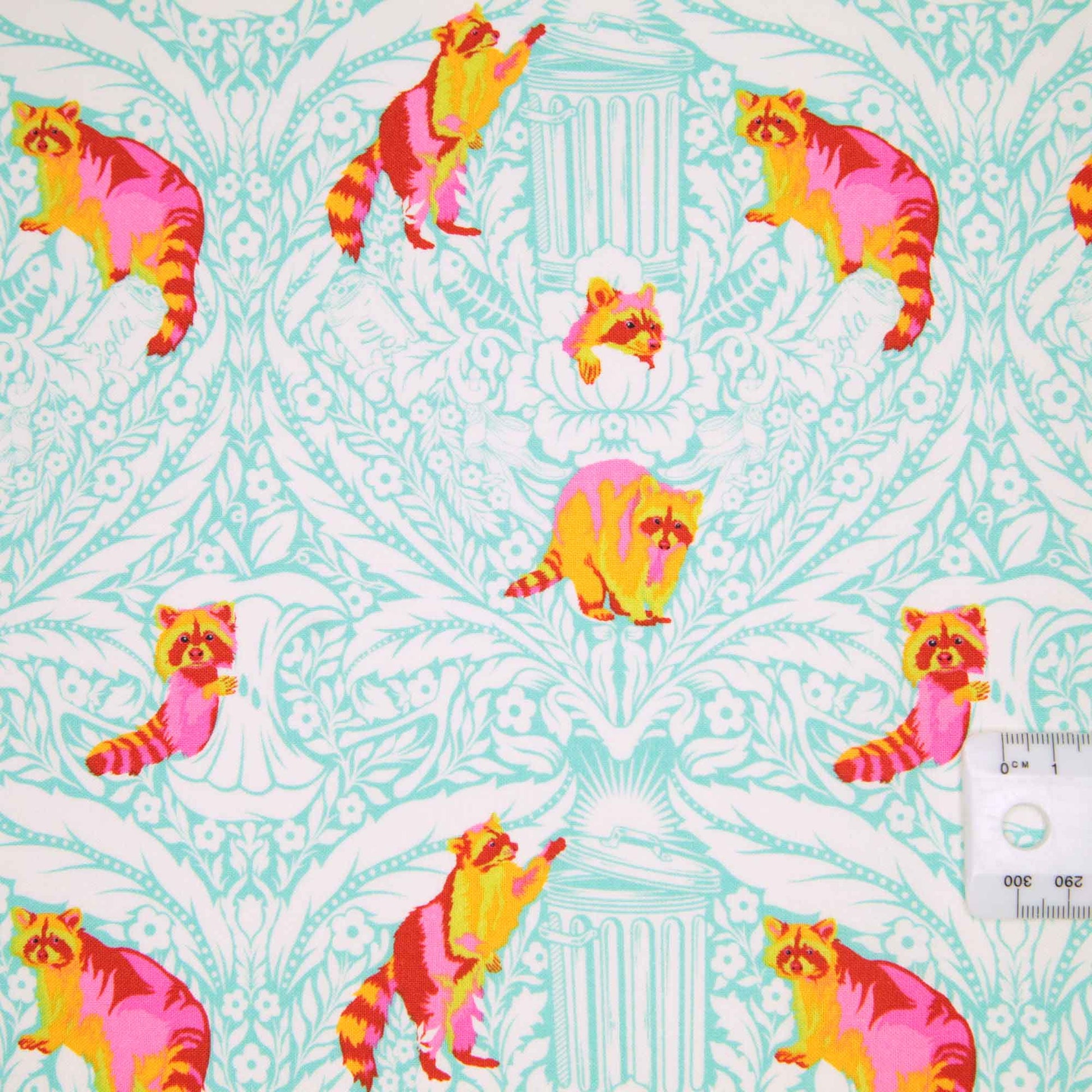 Erin loves Trash Pandas (aka Raccoons) and has a Hawaiian shirt made out of this fabric. Make sure to compliment him on it if he's wearing it in store :)