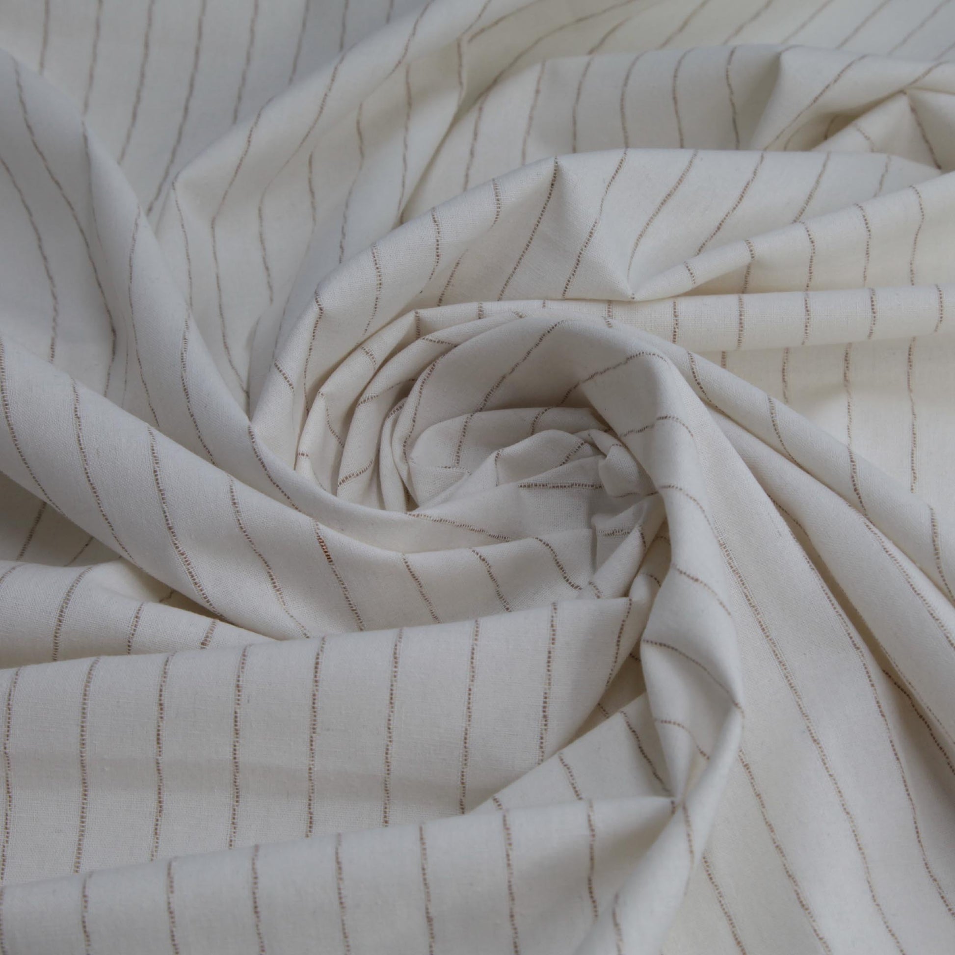 Classic linen pattern in an off white with light stripes woven into the fabric and running down the length. Threads have an uneven texture/slub making this linen feel slightly rough but won't crease as readily as a lighter linen. Linen pants anyone?