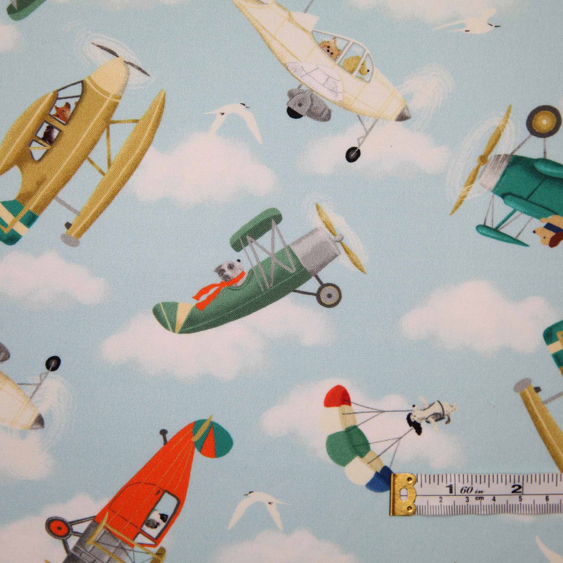 We never see flying related fabrics and then this comes along - vintage planes with dog pilots!
