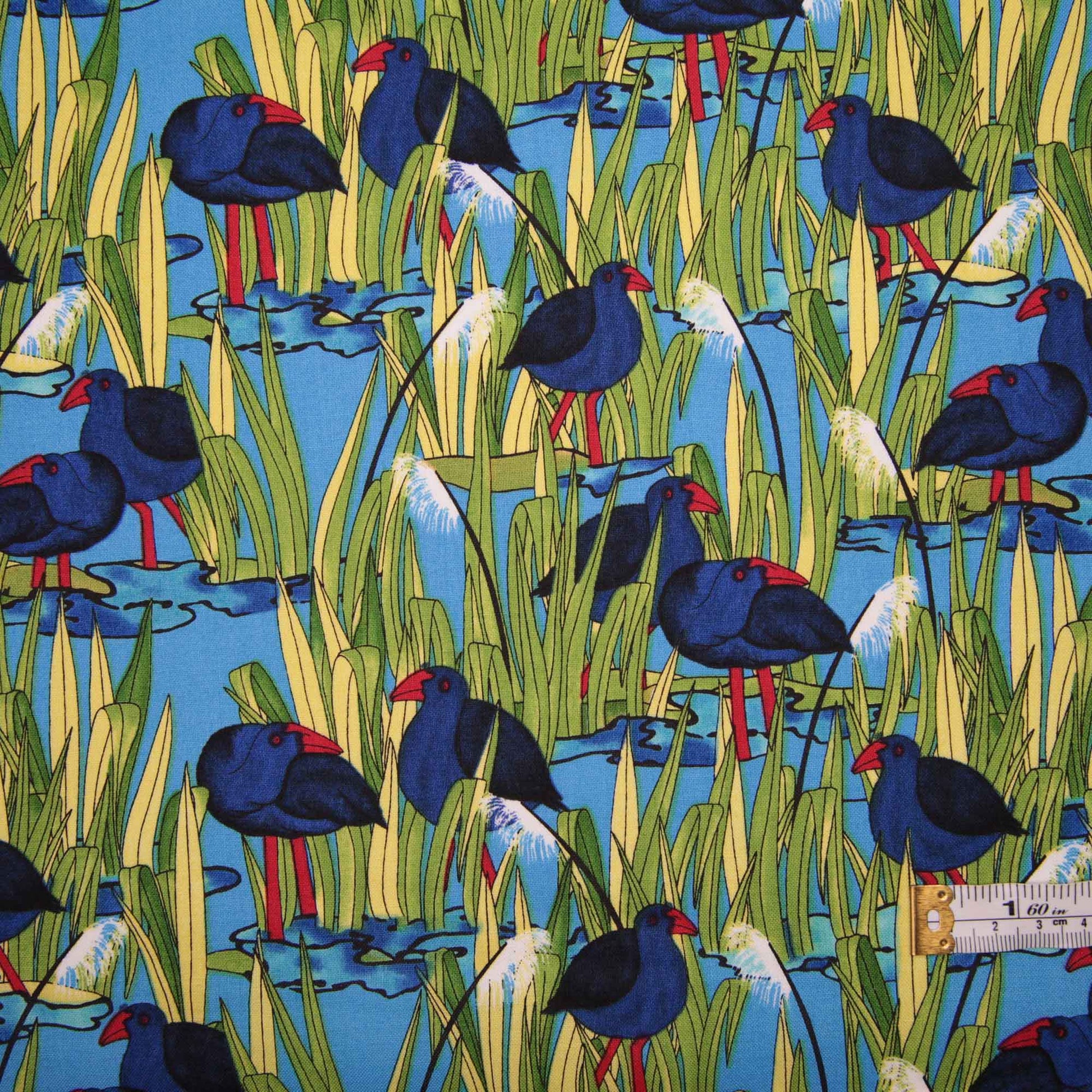 Pukekos stomping around in a flax wetland - classic kiwiana image